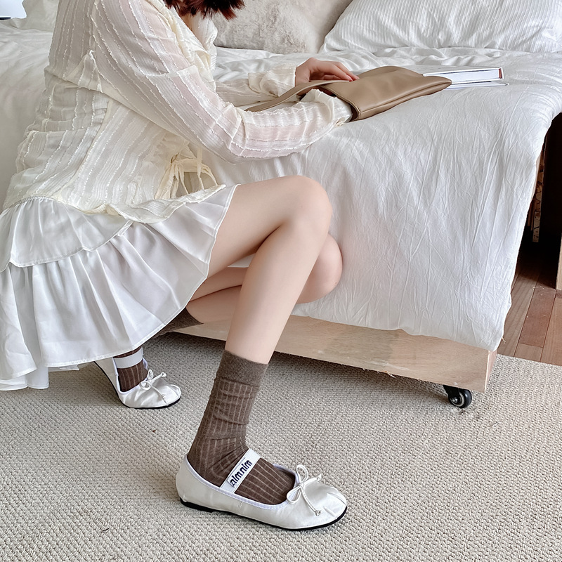 袜子女走秀款夏季薄款堆堆袜纯色中筒袜条纹镂空网眼网红春秋长袜