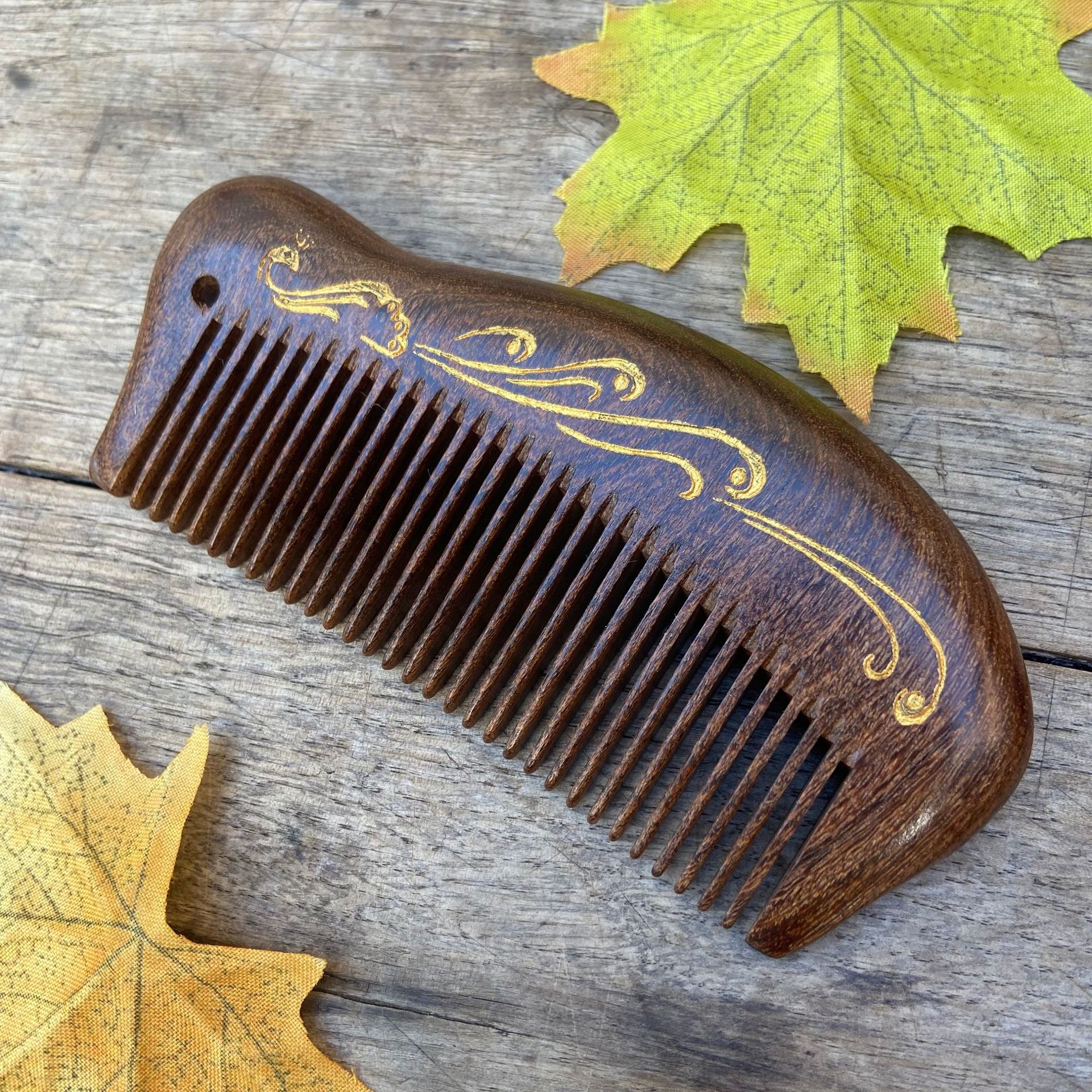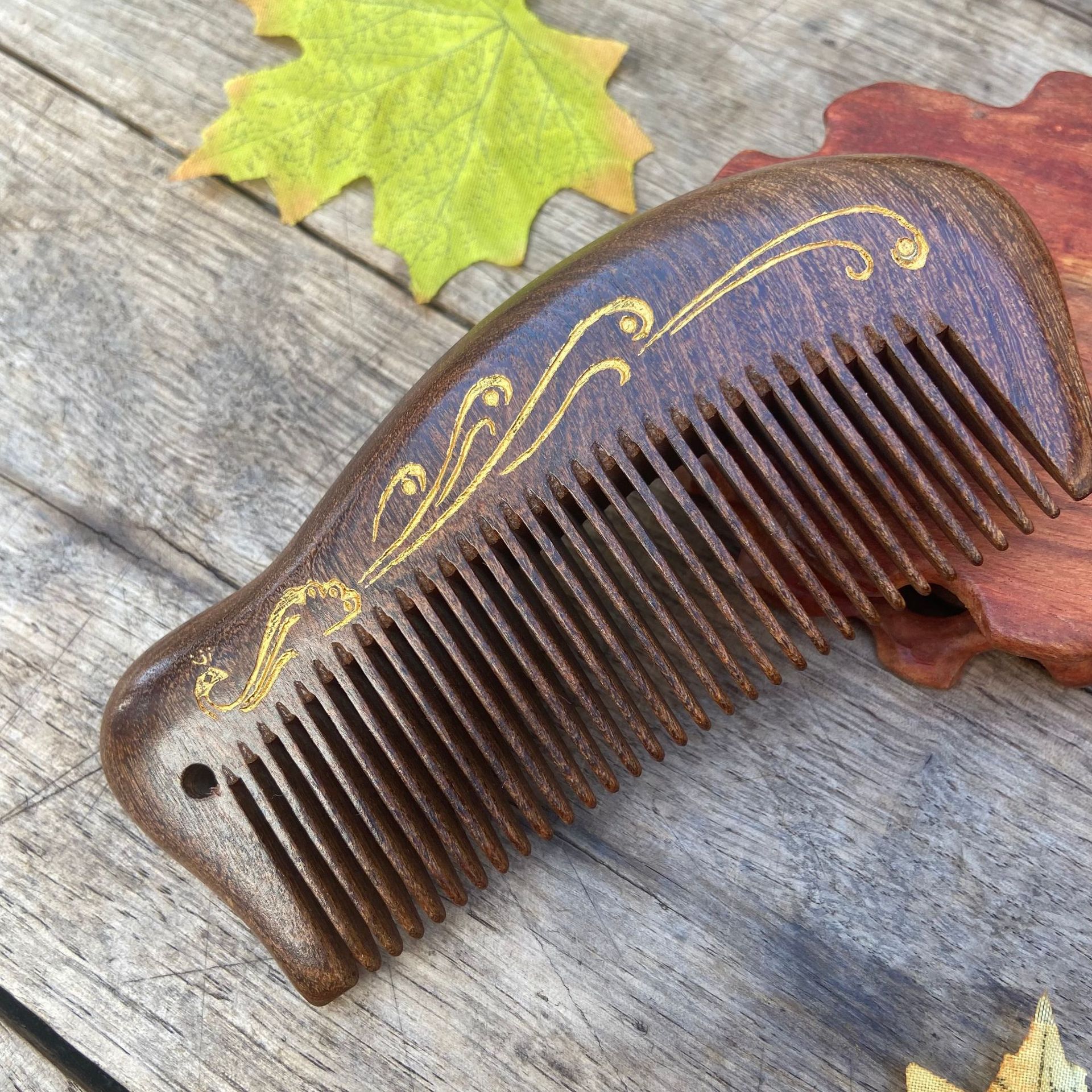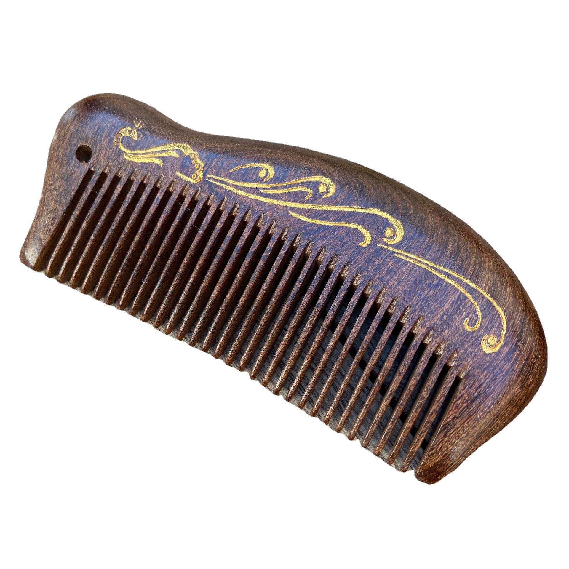 黑金檀木梳子檀木梳子儿童木梳礼品梳金丝檀描金孔雀梳子