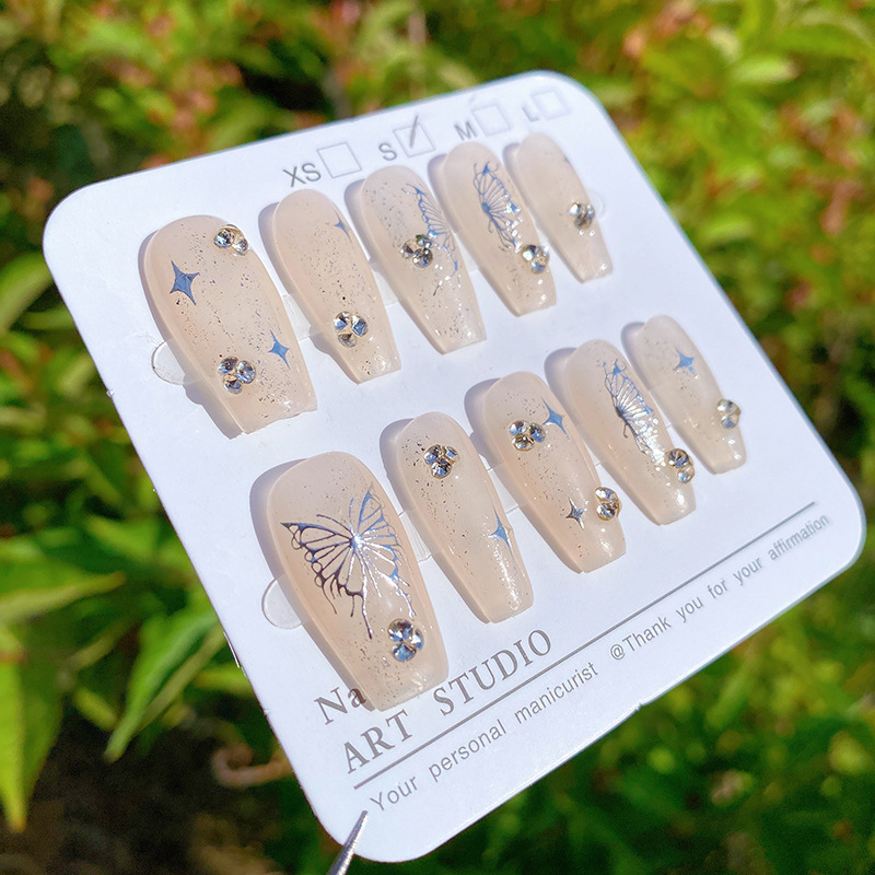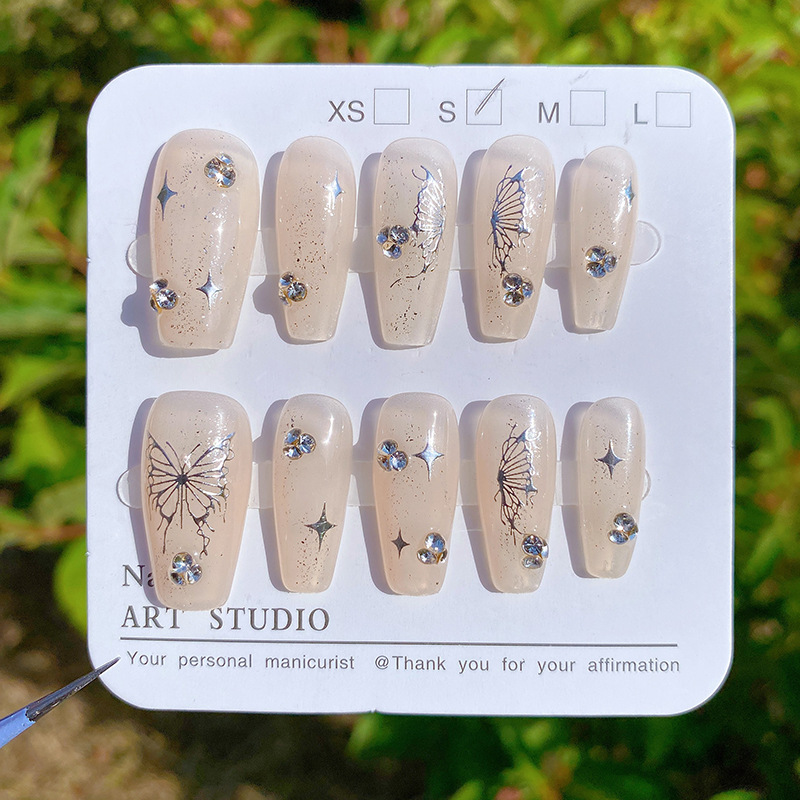 纯手工穿戴甲裸色液态蝴蝶碎钻纯欲风显白美甲可拆卸甲片
