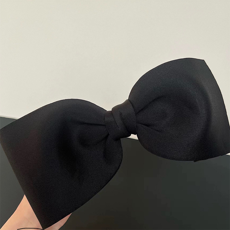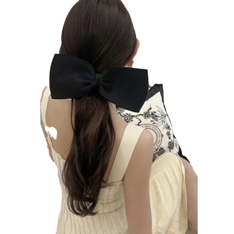 复古简约黑色超大蝴蝶结发夹女法式极简风盘发鸭嘴夹发卡后脑勺夹
