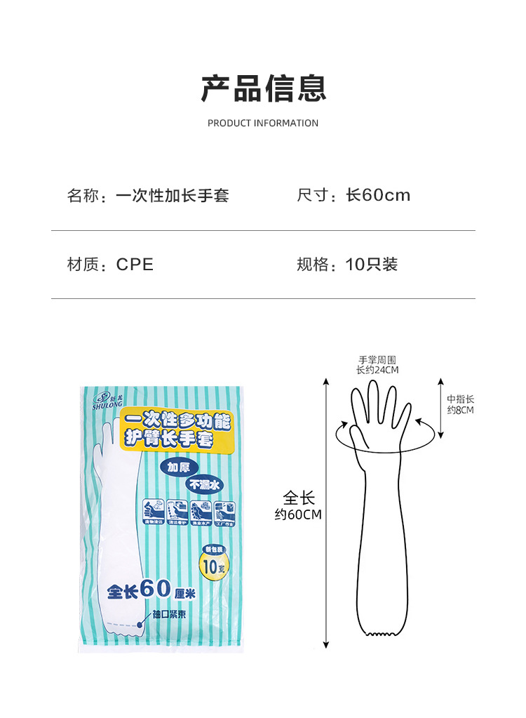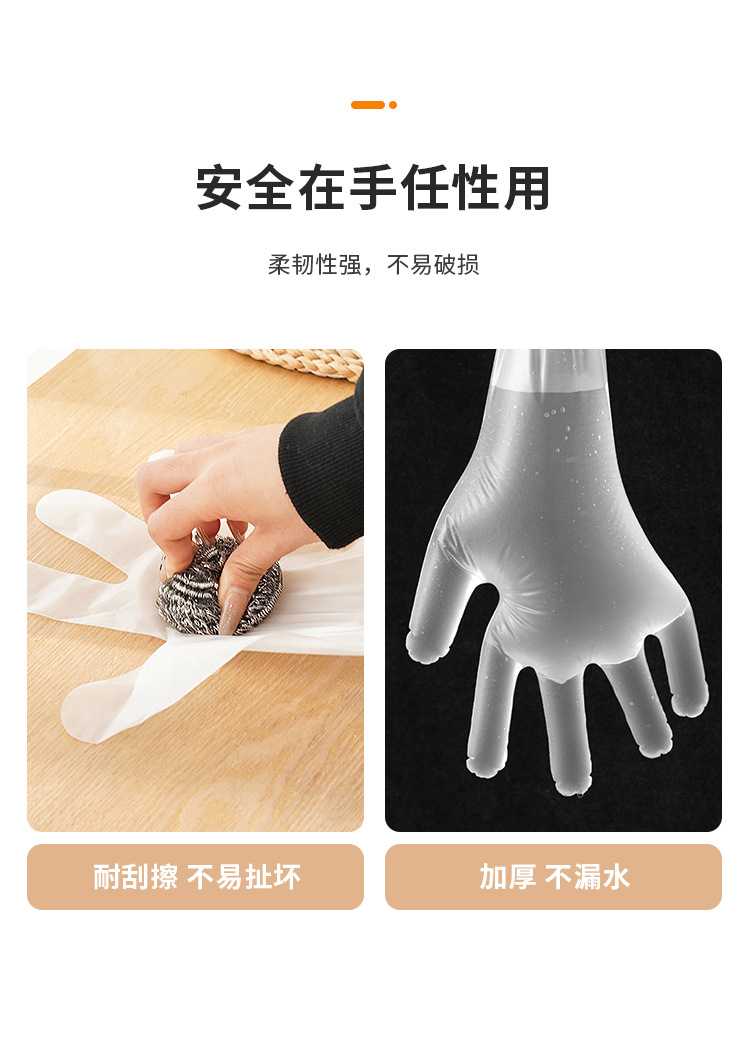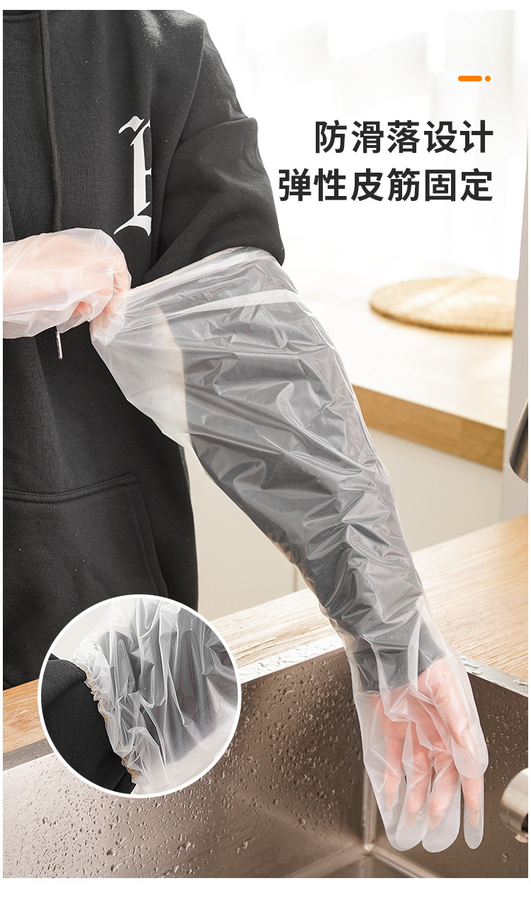 一次性透明手套10只装加长加厚厨房洗碗松紧口防水食品级家务手套