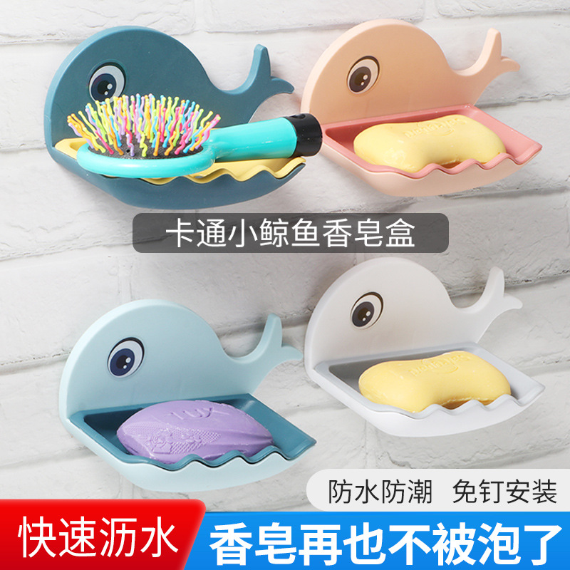 卡通小鲸鱼肥皂盒置物架塑料免打孔双层沥水皂盒浴室香皂收纳盒