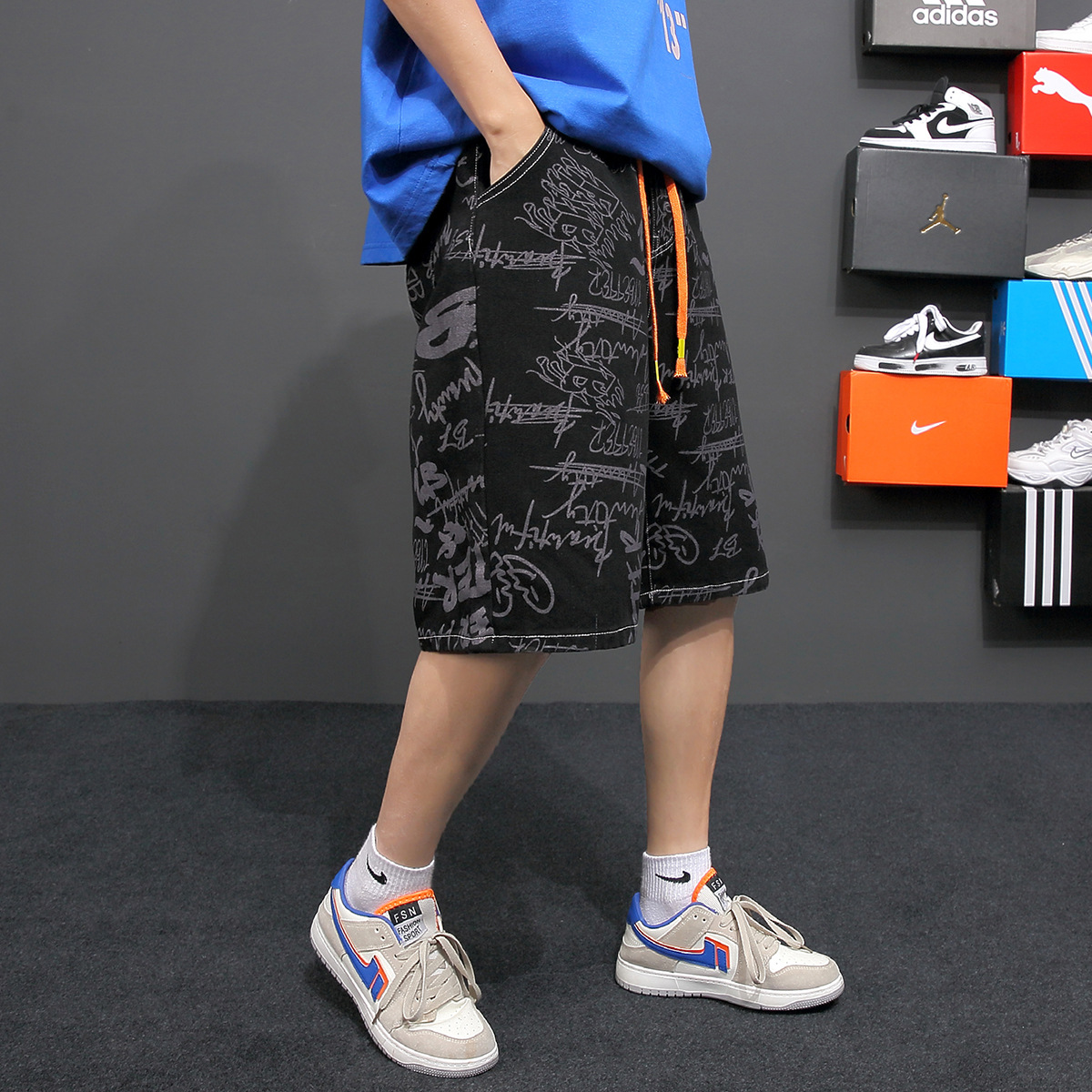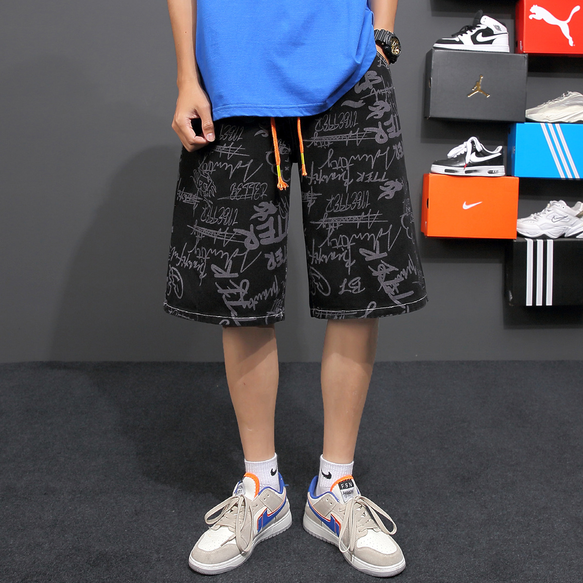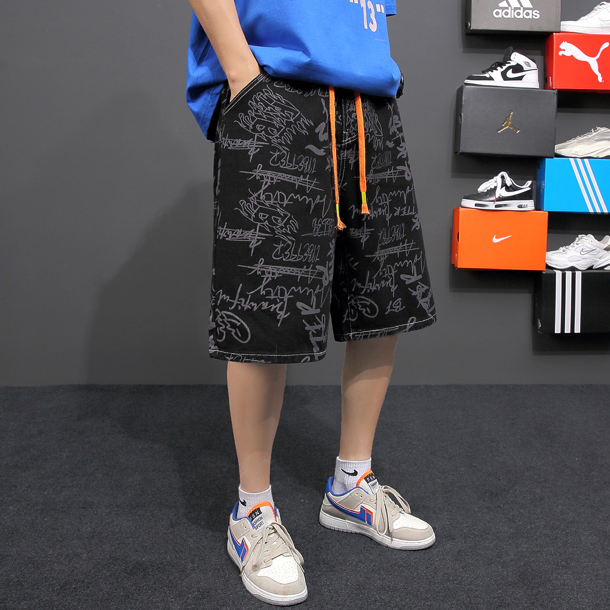 夏季新款抽绳直筒印花大码男士五分裤韩版宽松提花休闲时尚百搭