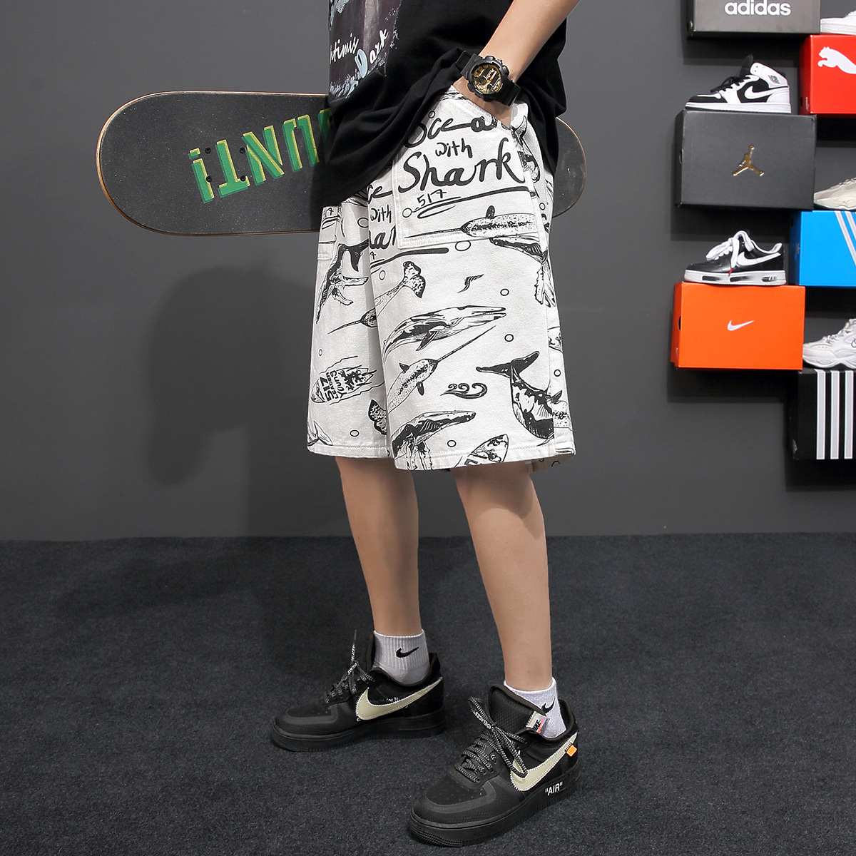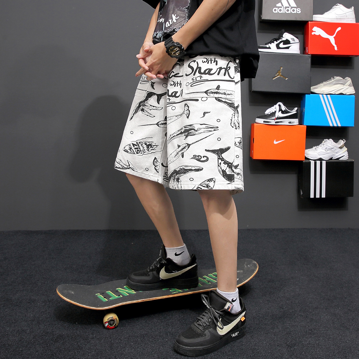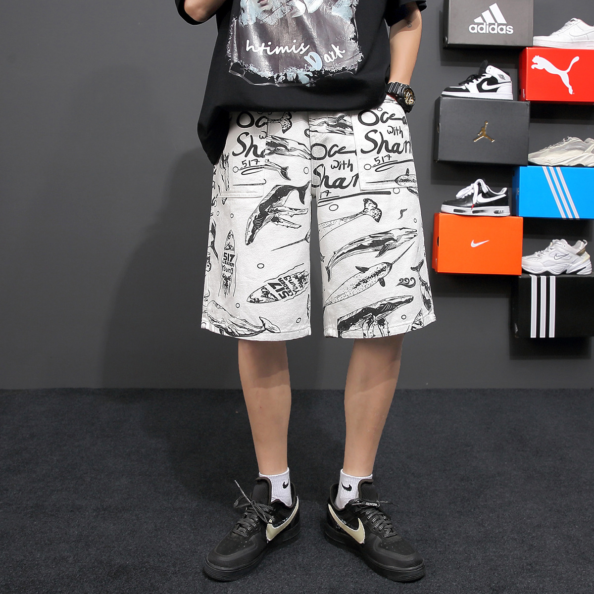 夏季新款抽绳直筒印花大码男士五分裤韩版宽松提花休闲时尚百搭