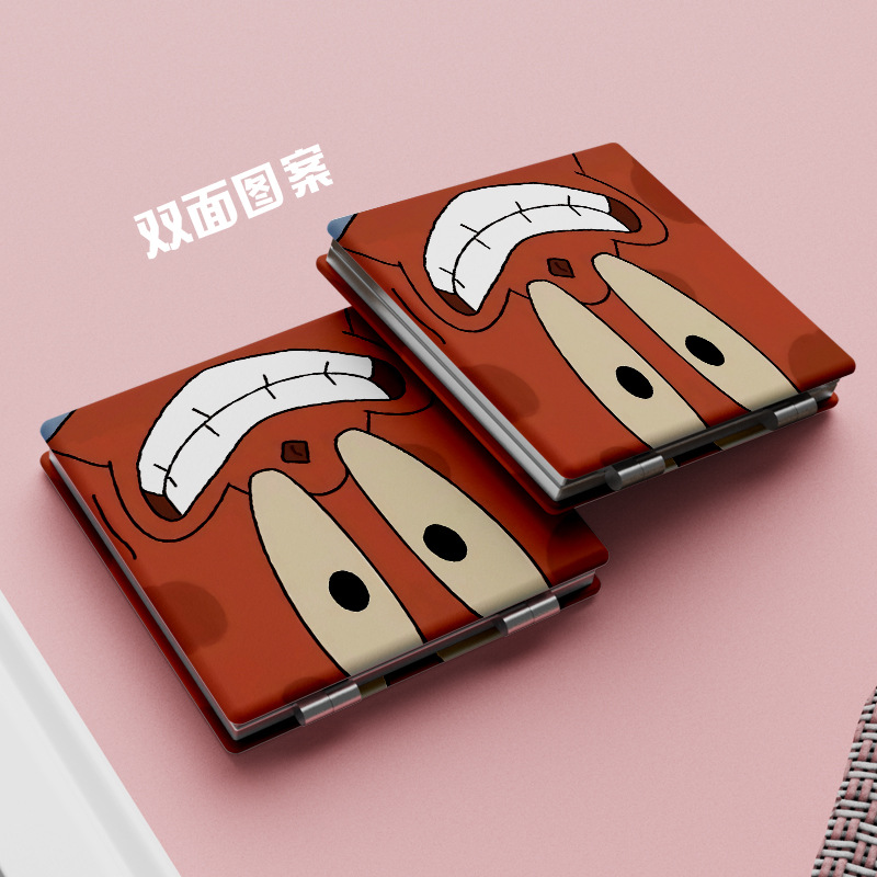 蟹老板学生手持化妆镜随身便携折叠双面迷你补妆小镜子翻盖式女