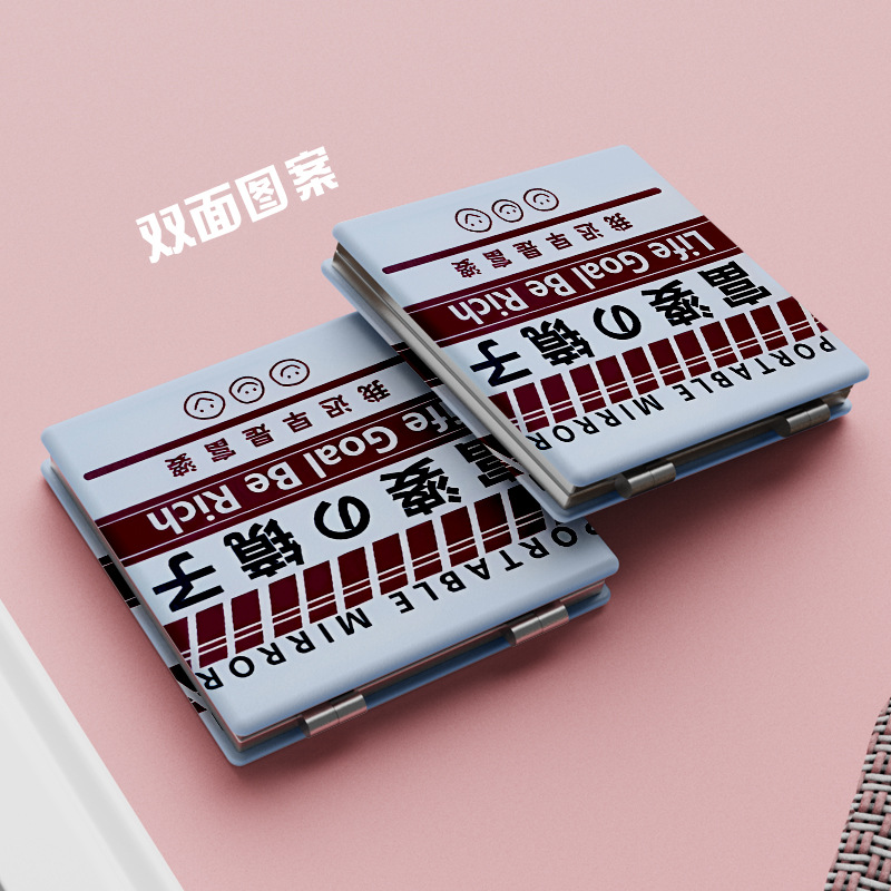 富婆的镜子个性迷你折叠双面文字风随身便携手拿化妆镜学生补妆镜