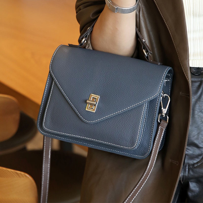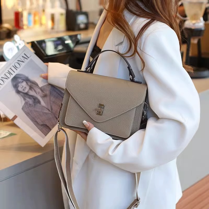 真皮女包手提包女士通勤包夏季新款邮差包法式斜挎包小方包