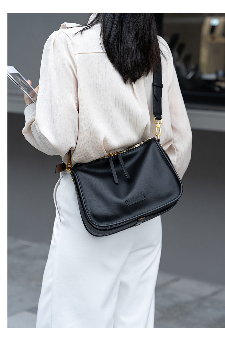 头层牛皮软皮宽肩带斜挎包包女新款大容量真皮简约单肩腋下包