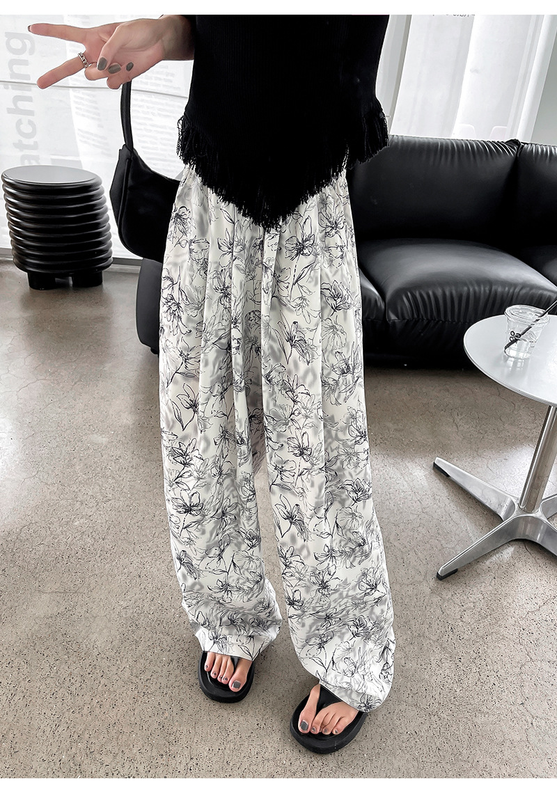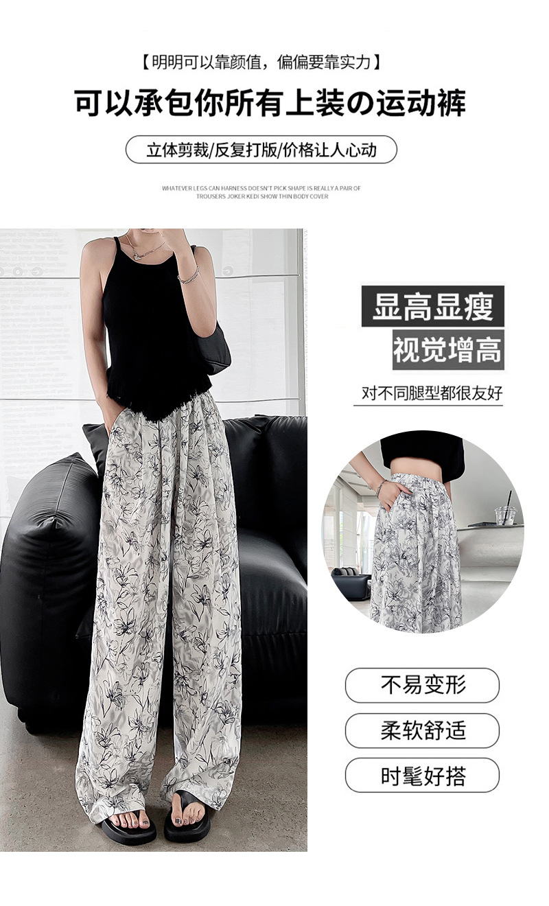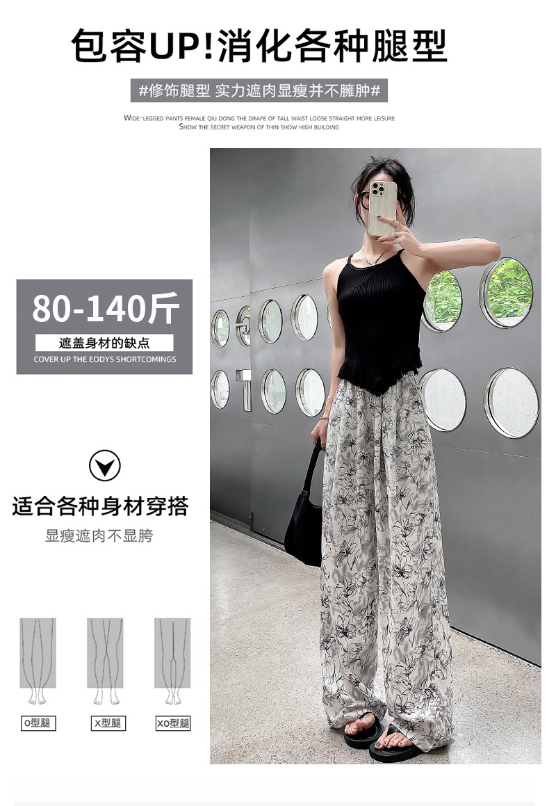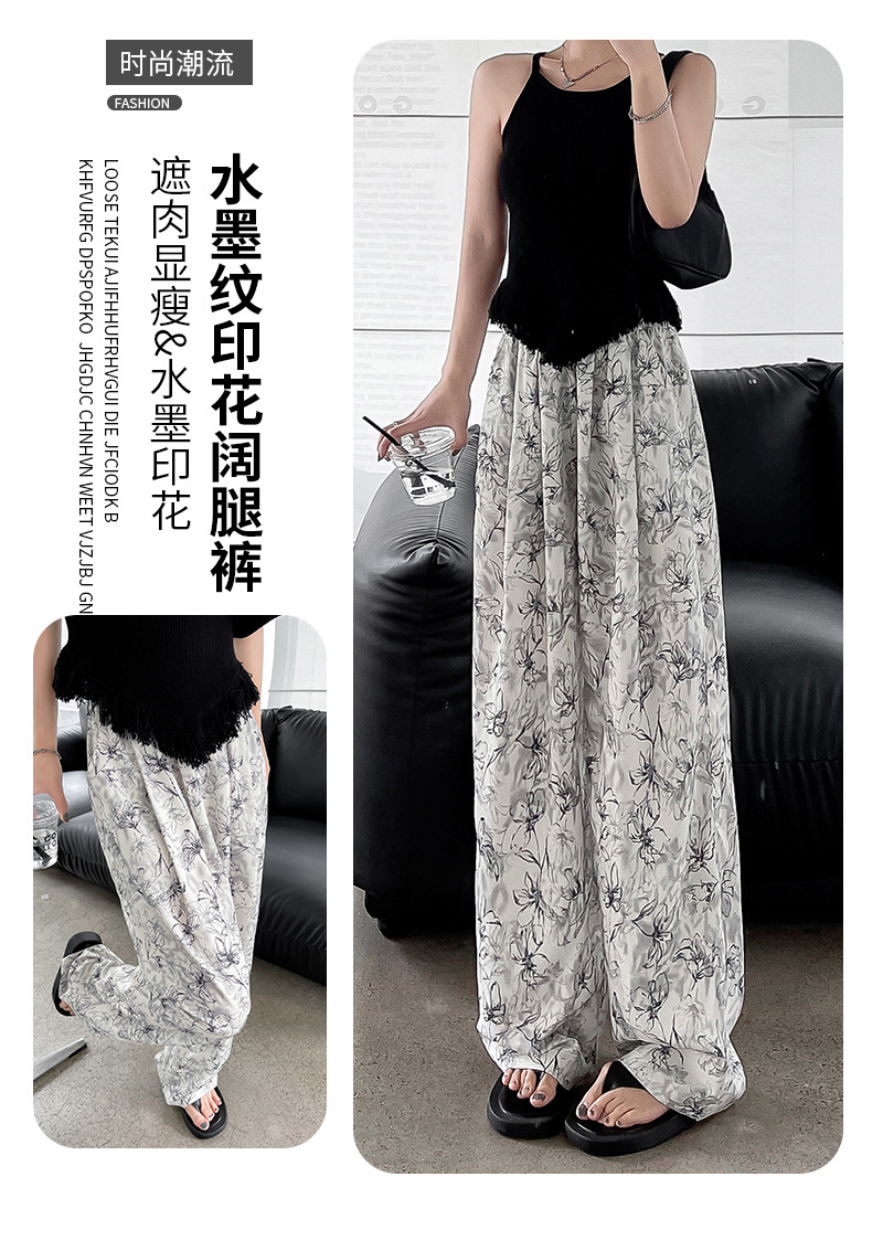 冰丝阔腿裤女夏季新款高腰垂感水墨扎染直筒裤新中式禅意裤子