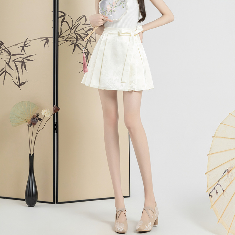 新中式国风蝴蝶结设计感马面裙包臀裙缎面蝴蝶提花半身裙新款