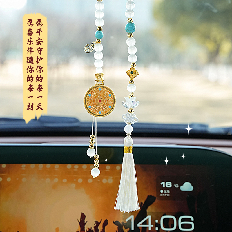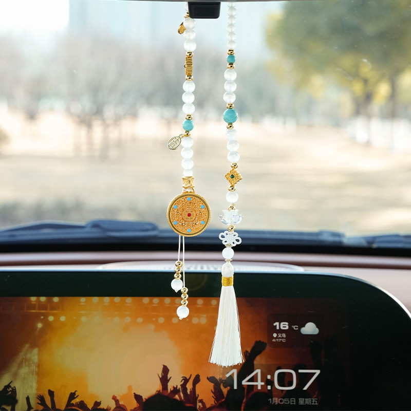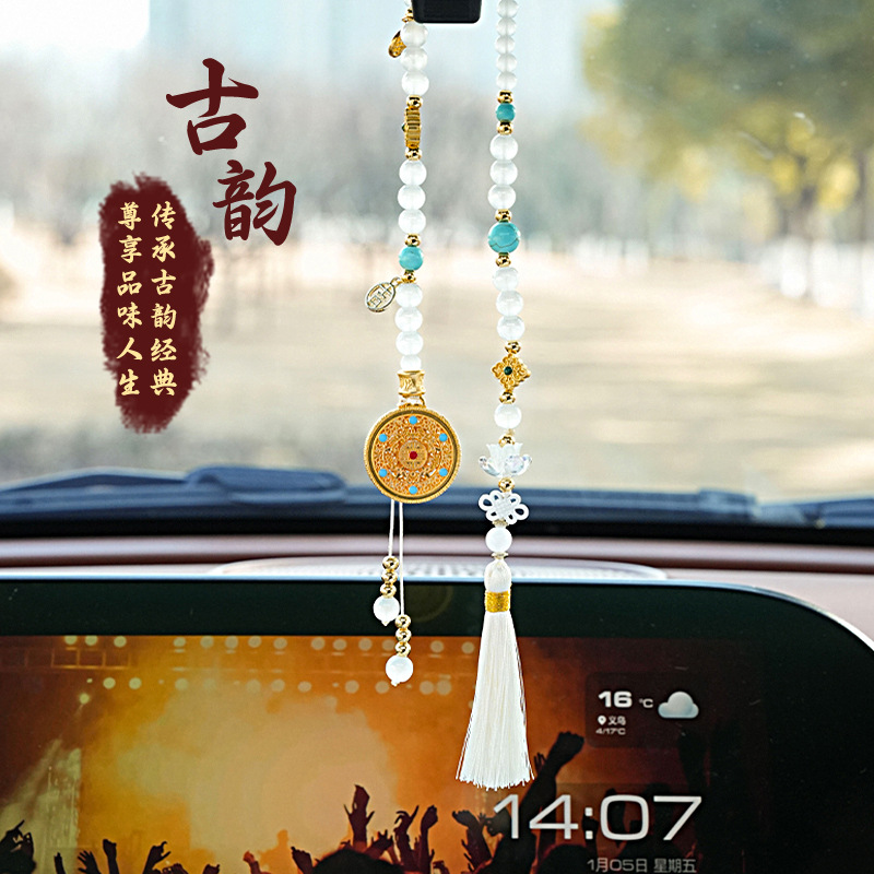 古风汽车挂件 精致镂空圆盘车载后视镜挂饰 古韵秀气流苏车用挂件