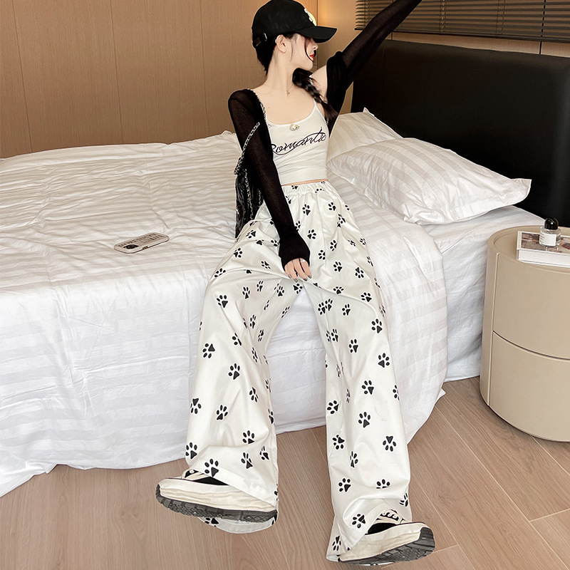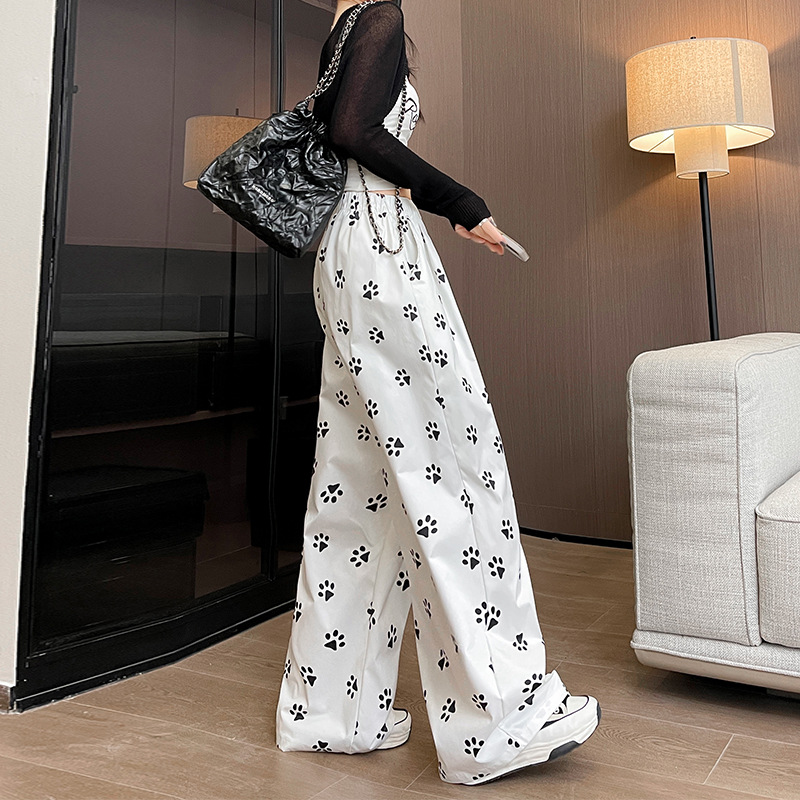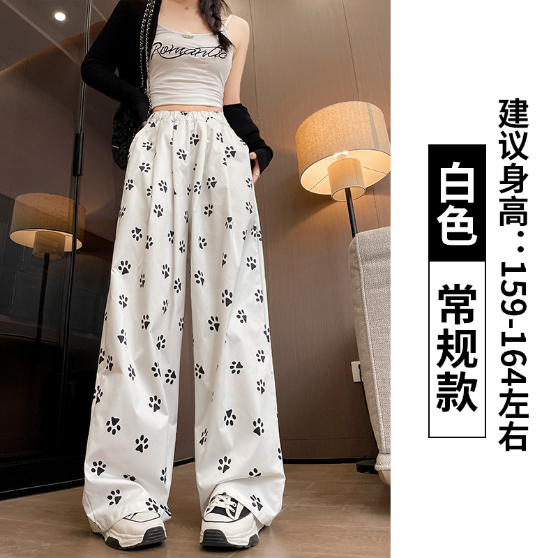 狗爪印花山本裤女夏季新款高腰垂感休闲运动裤显瘦直筒阔腿裤