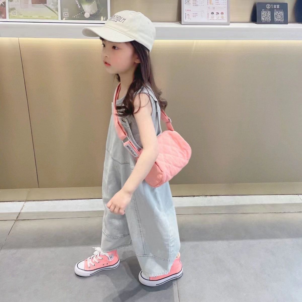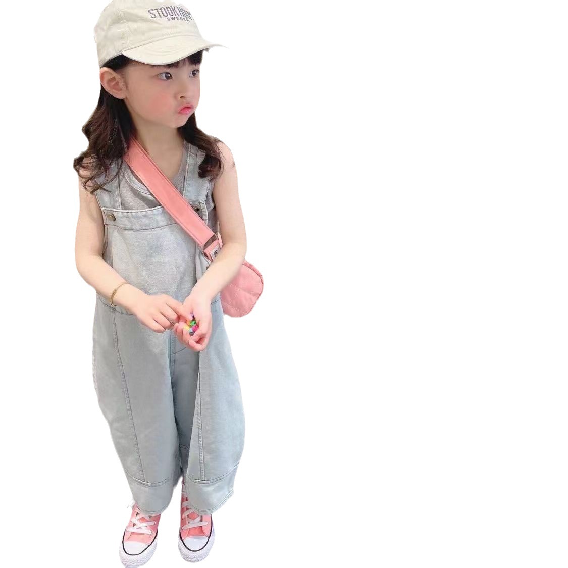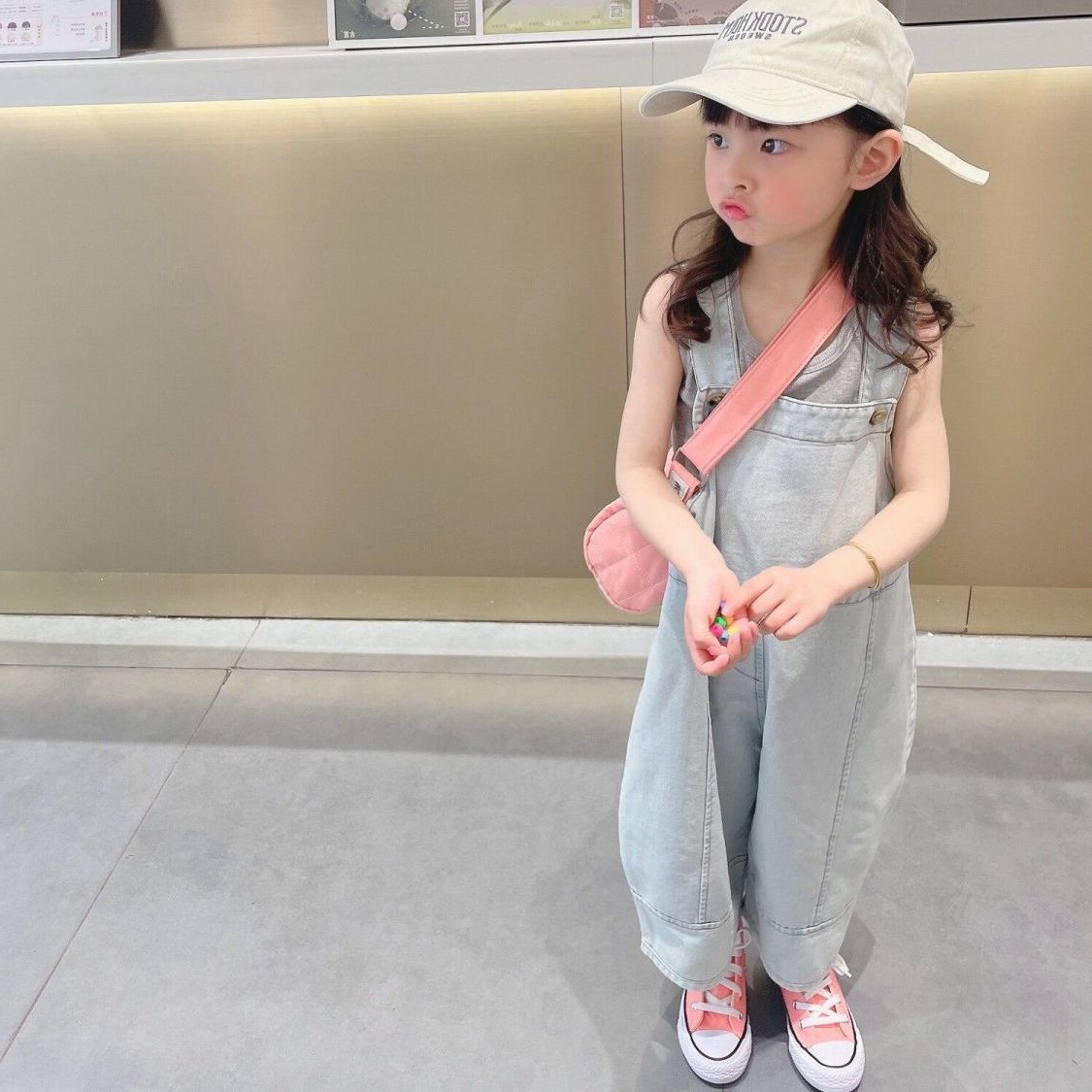 夏季女童牛仔背带裤宝宝洋气儿童个性潮牌韩版复古时髦网红牛仔裤