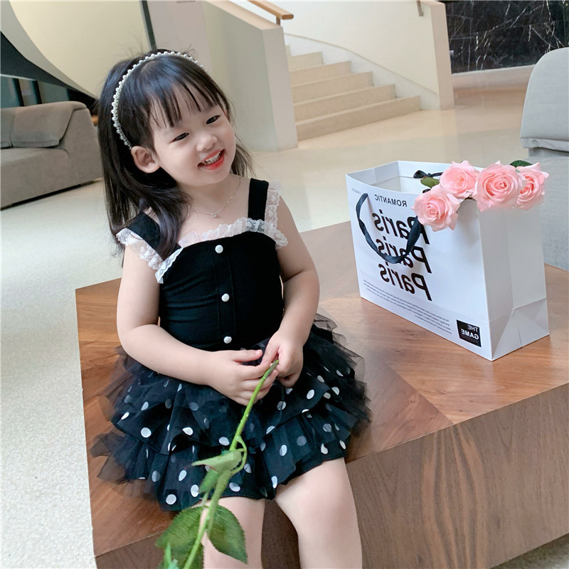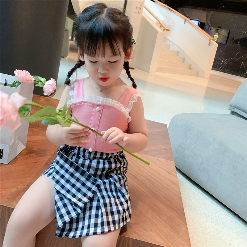 夏季女童背心吊带宝宝网红洋气儿童个性潮牌韩版珍珠蕾丝花边上衣