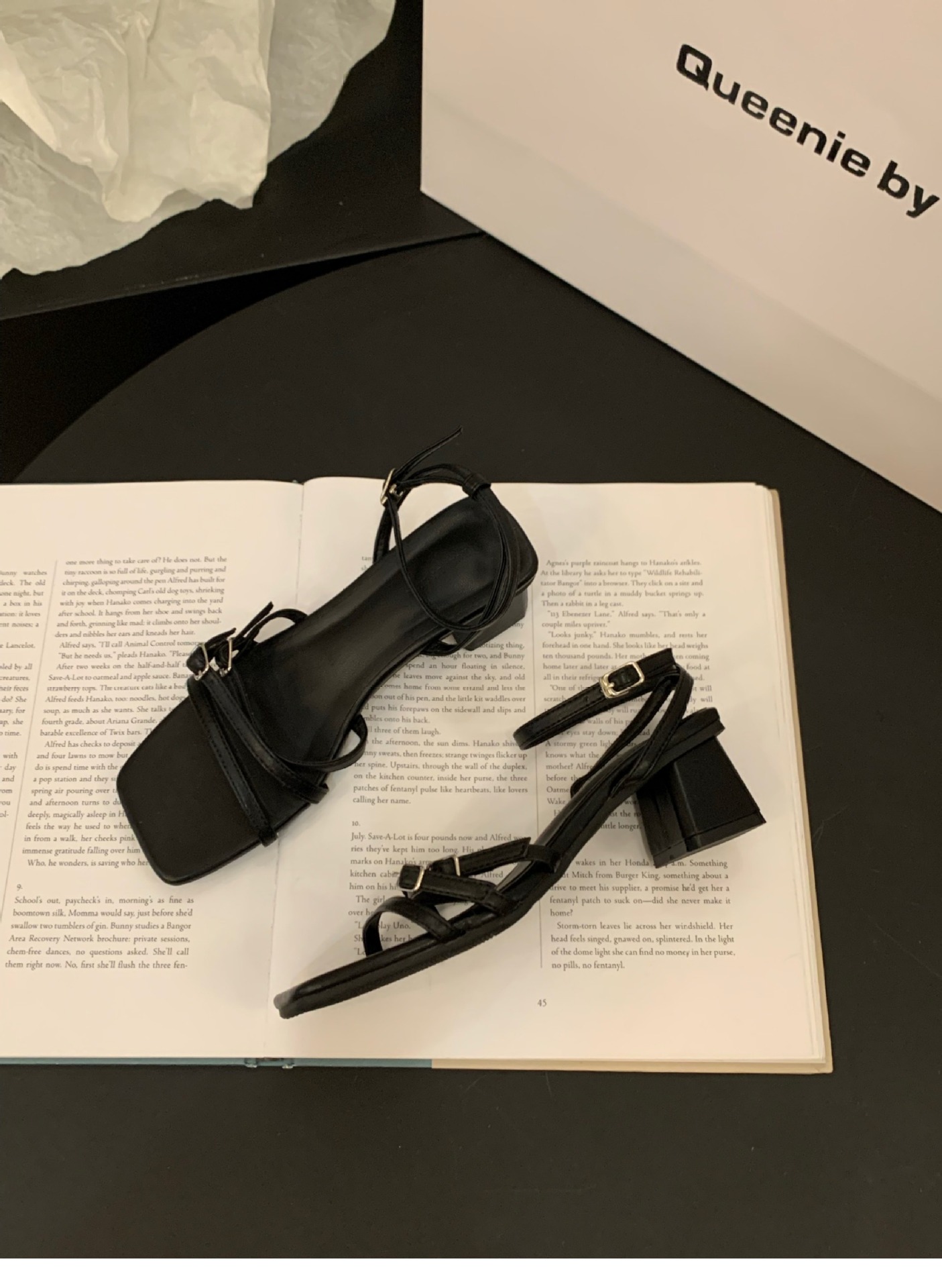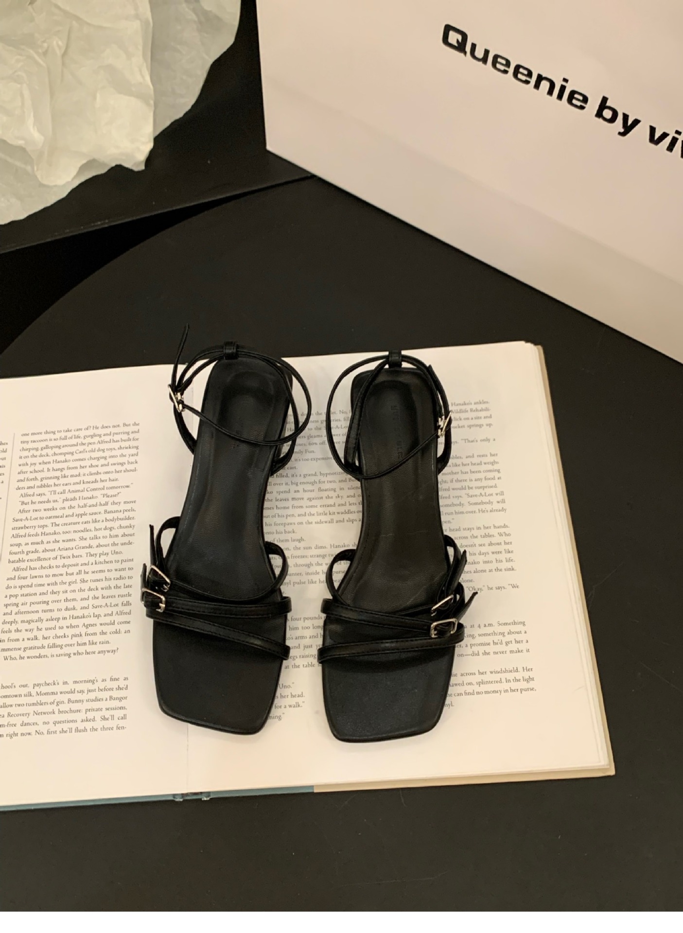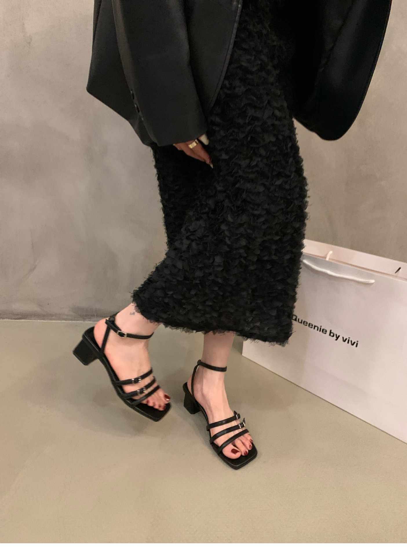 法式中高跟一字带凉鞋仙女鞋子年新款夏季气质银色粗跟罗马鞋