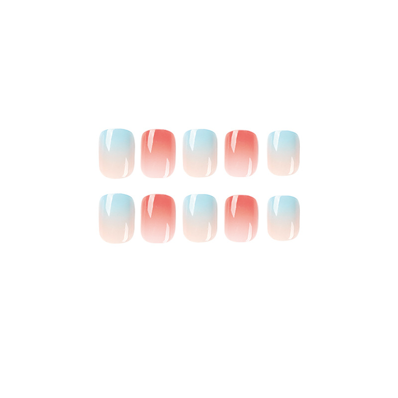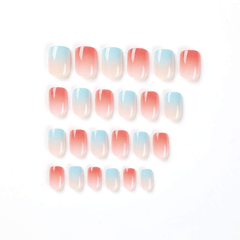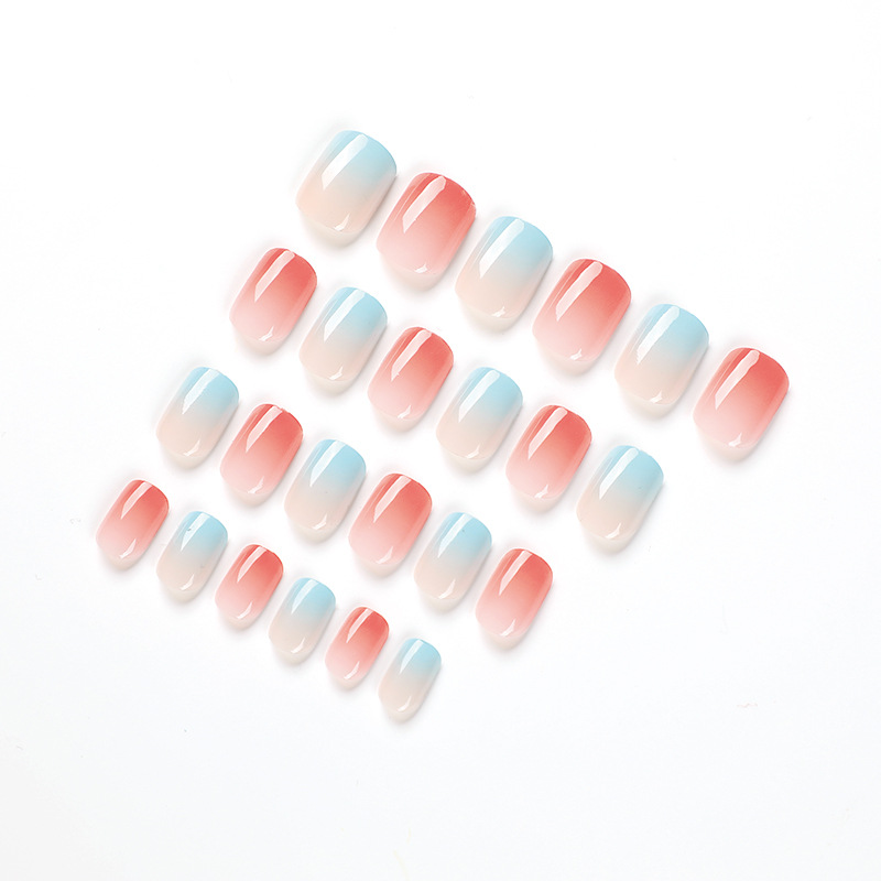 穿戴甲甲片粉蓝渐变鸳鸯美甲片美甲成品指甲贴片假指甲甲片