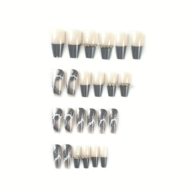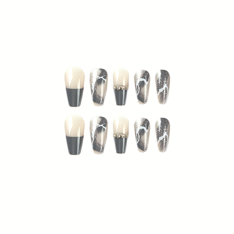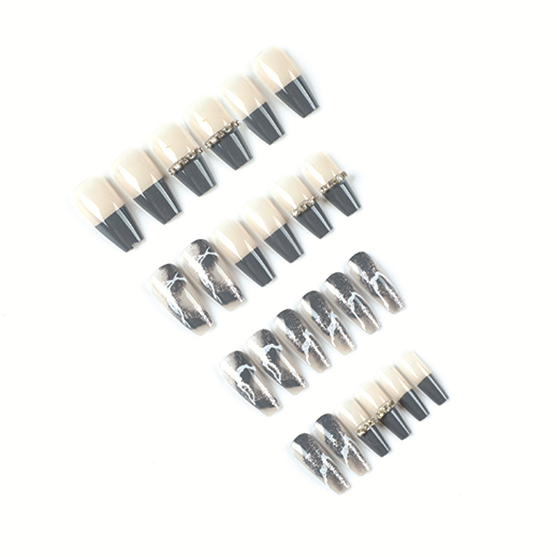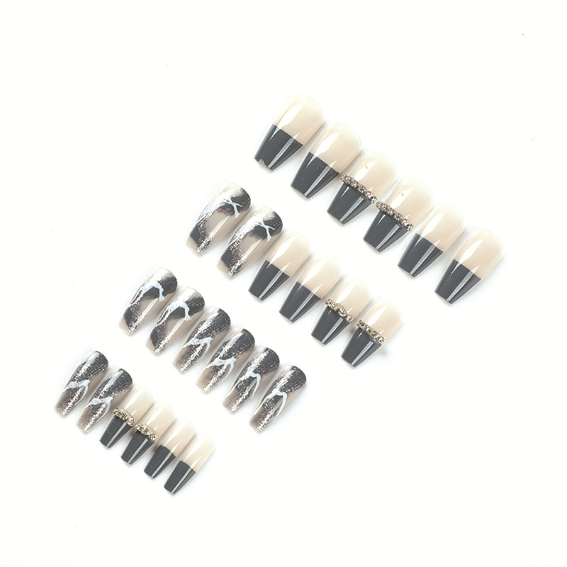 穿戴甲甲片深蓝色法式链条水钻白色线条银色闪粉美甲片成品可拆卸