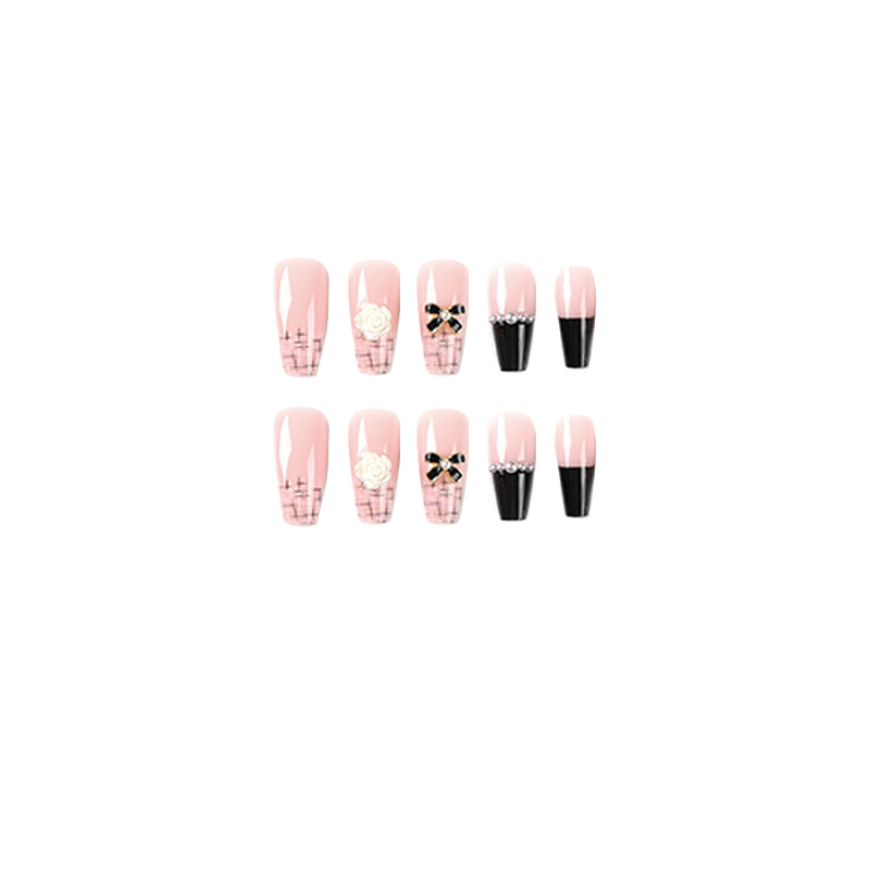 法式穿戴甲山茶花蝴蝶结高质感美甲甲片批发可拆卸穿戴式指甲片