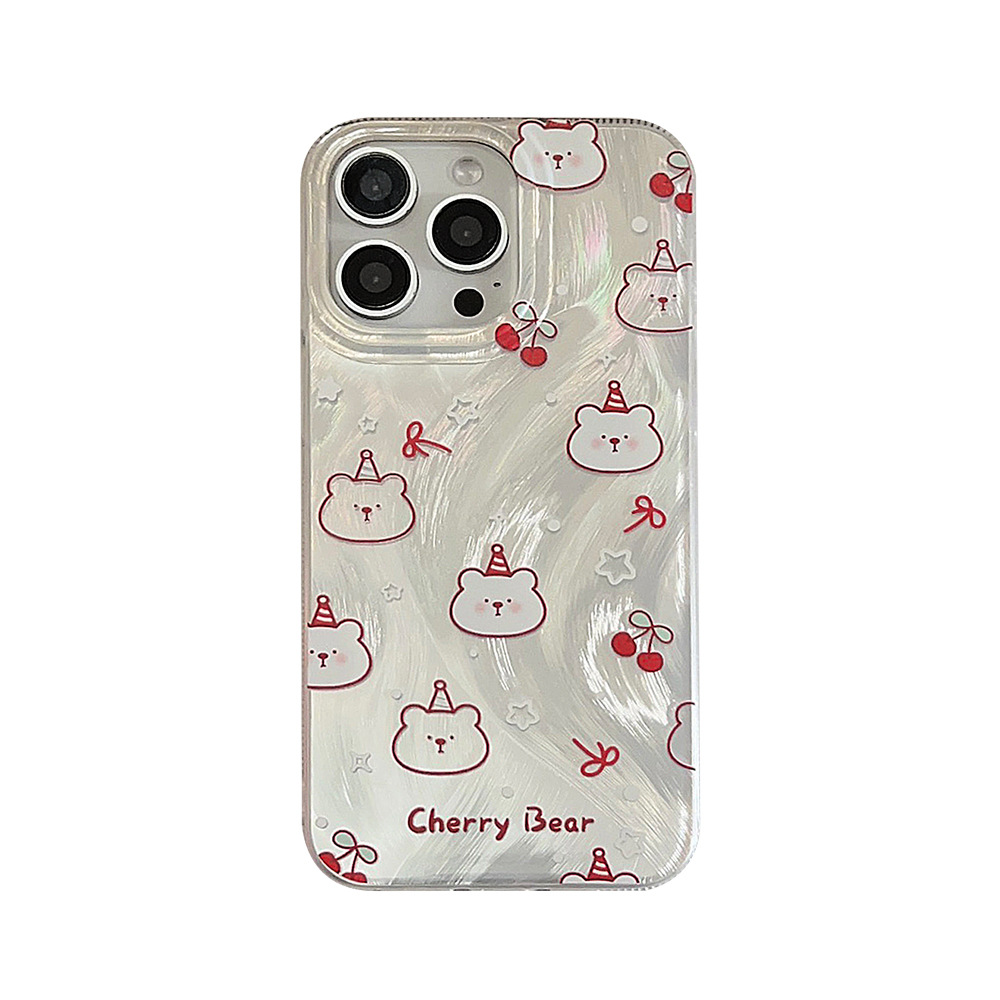 适用iPhone14可爱樱桃小熊苹果15promax镭射iphone13防摔12