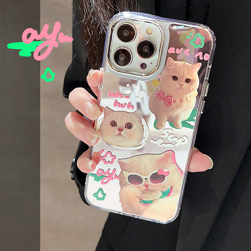 电镀镜面可爱小猫咪iphone13适用14promax苹果手机壳12软萌11套15