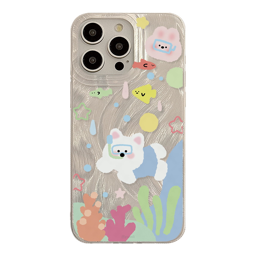 潜水海底小动物手机壳适用14苹果15promax趣味卡通iphone13羽纱12