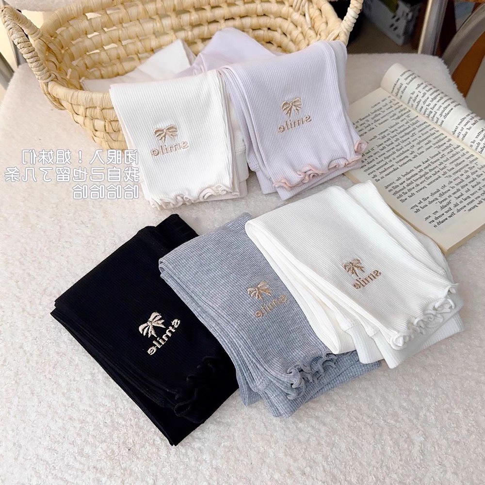 女童夏装打底裤宝宝洋气儿童个性潮韩版刺绣字母木耳边九分弹力裤