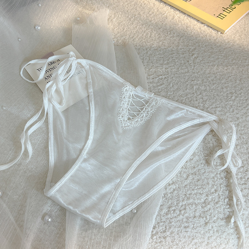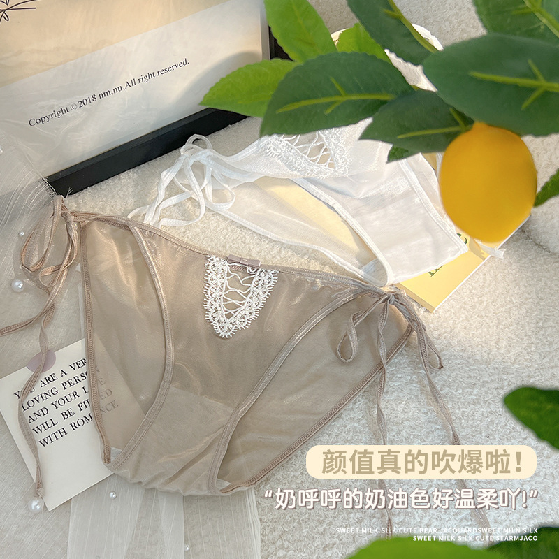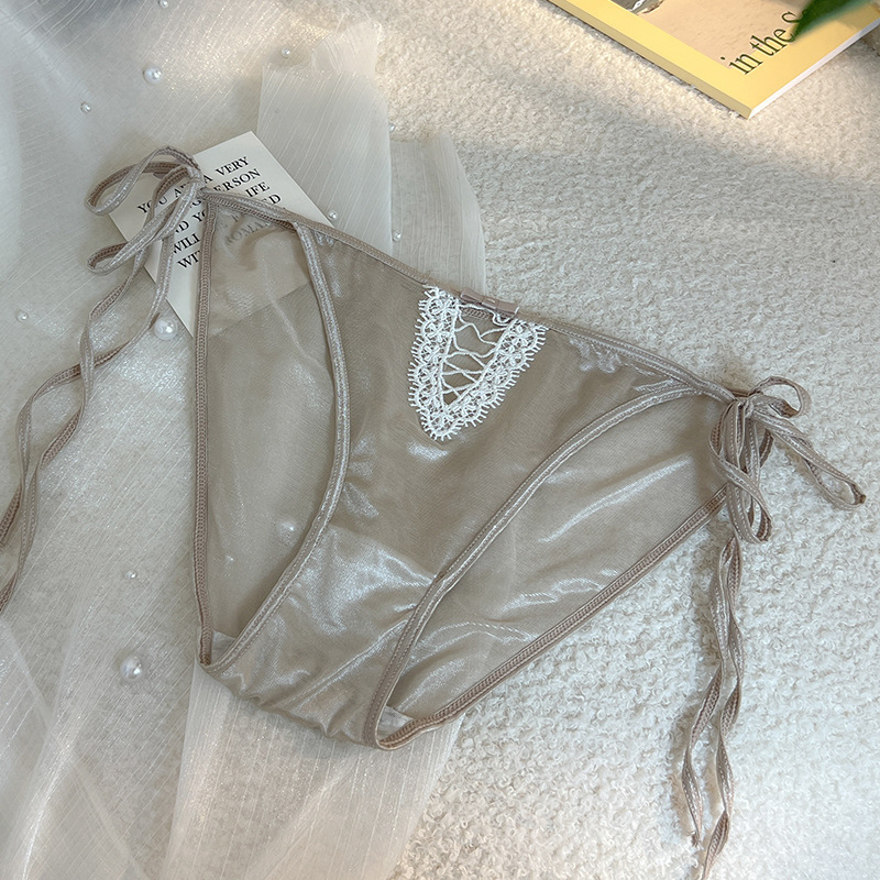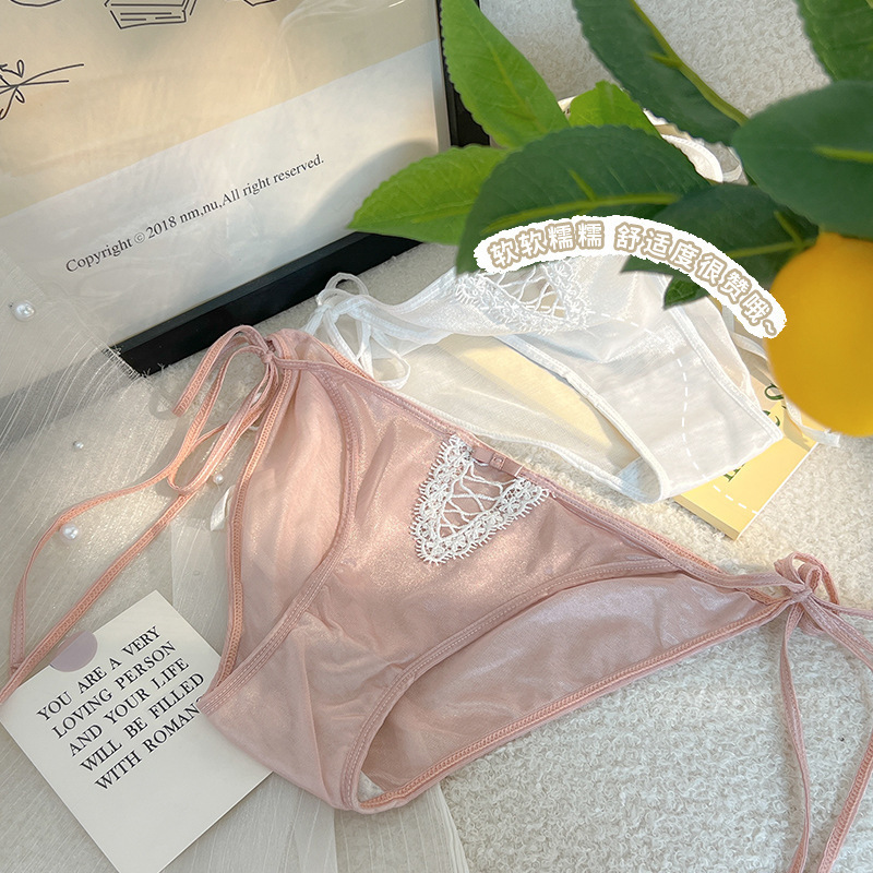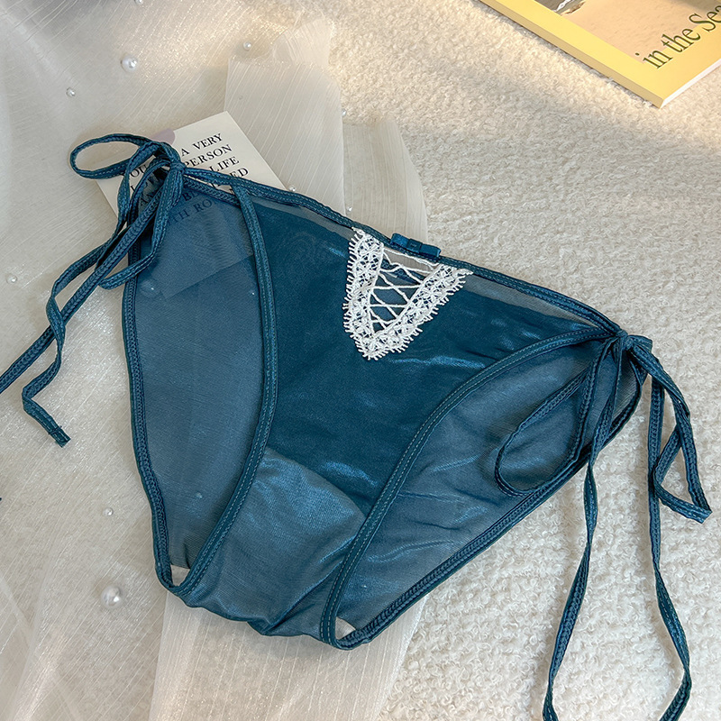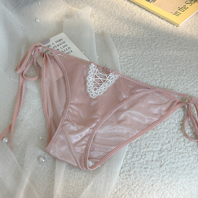 性感内裤女丝滑绸缎面绑带蕾丝低腰透明系带诱惑少女纯棉裆三角裤