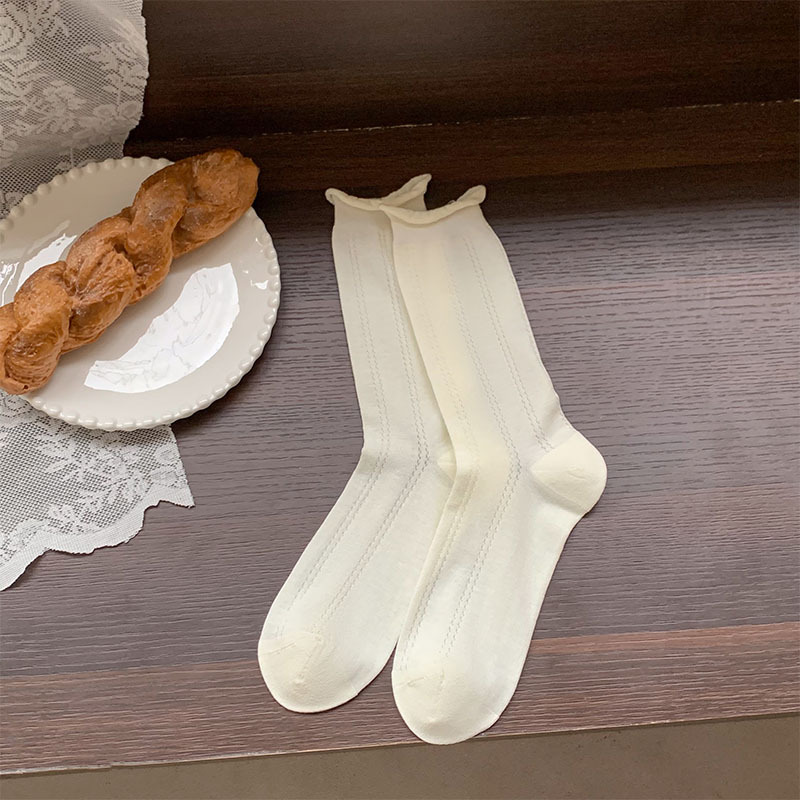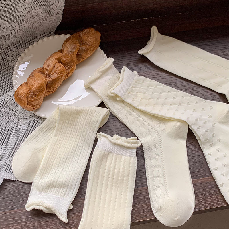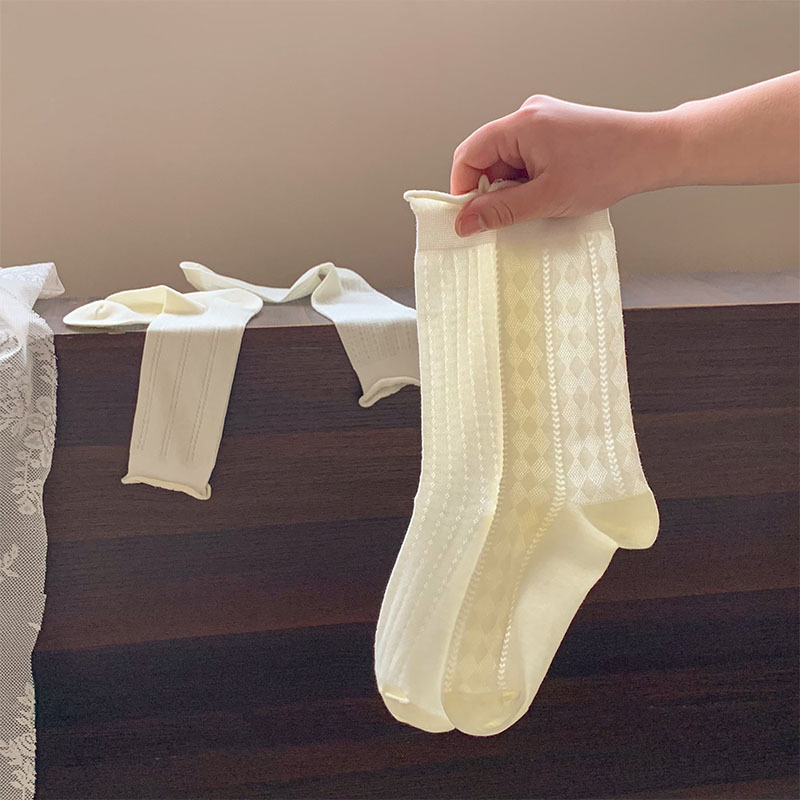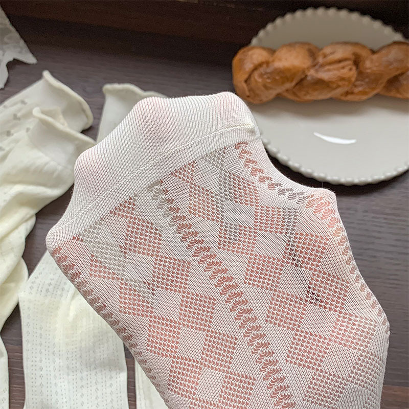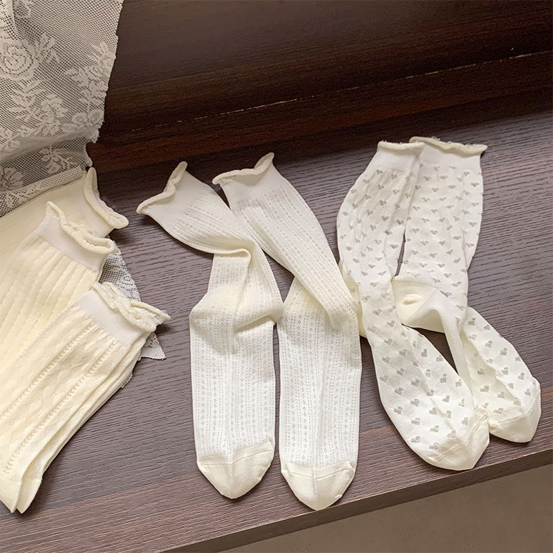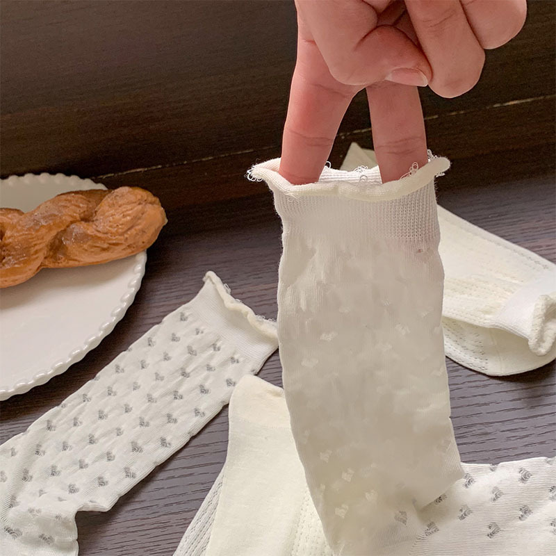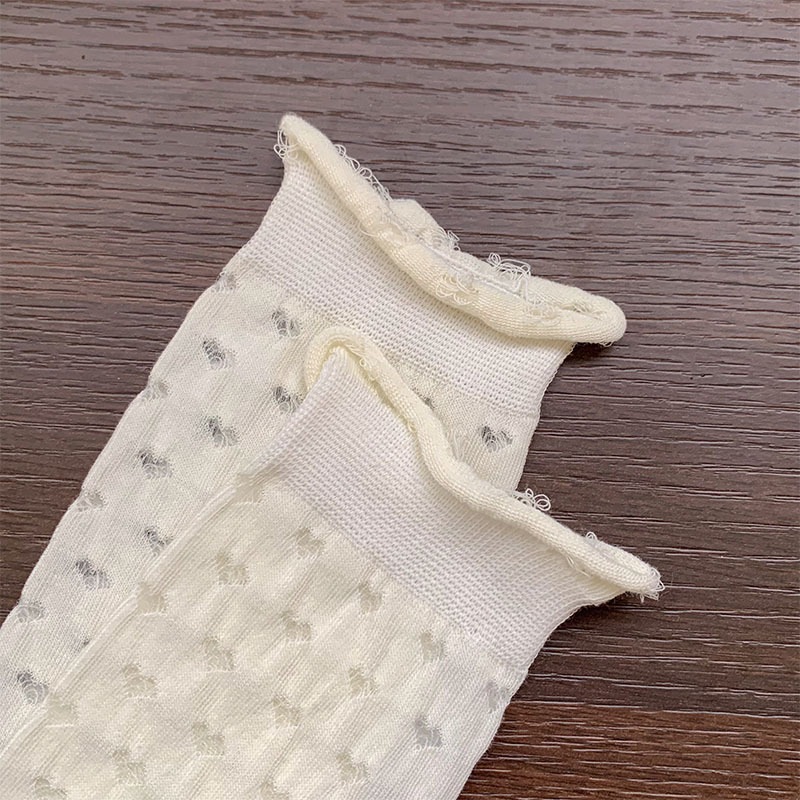 白色袜子女夏季薄款透明堆堆袜ins风甜美爱心镂空网眼透气中筒袜