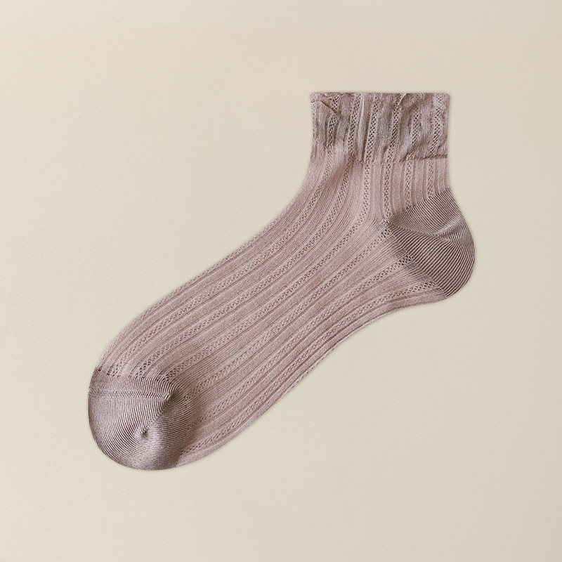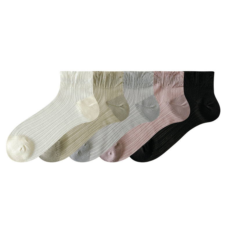 袜子女超薄花边短袜网眼玻璃丝竖条百搭船袜洛丽塔JK低帮短筒袜