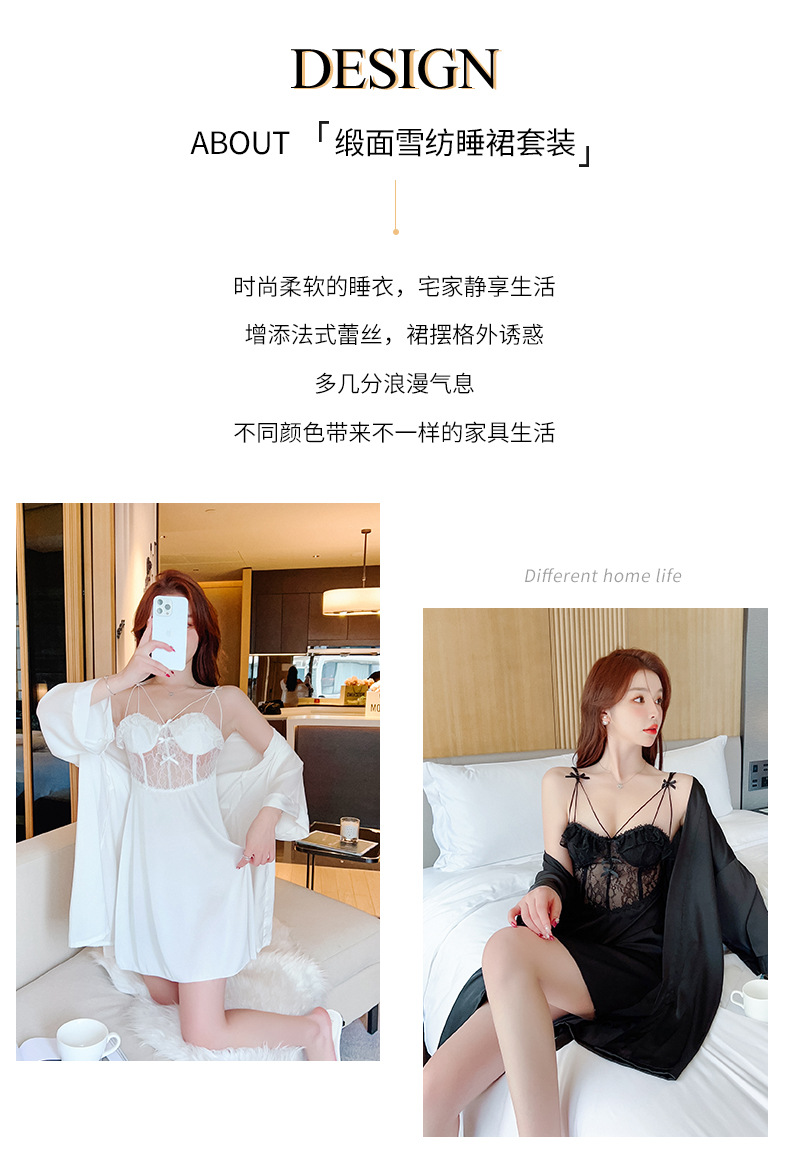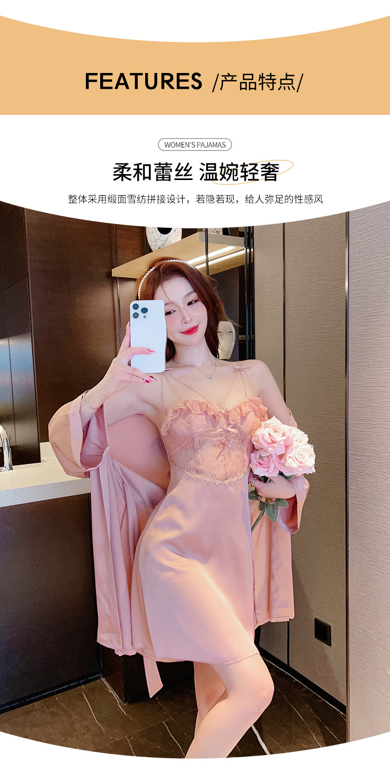 新款春季时尚女士缎面雪纺吊带睡衣家居服仿真丝透气厚款睡衣
