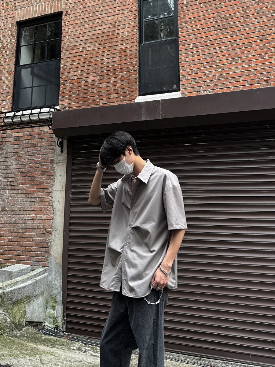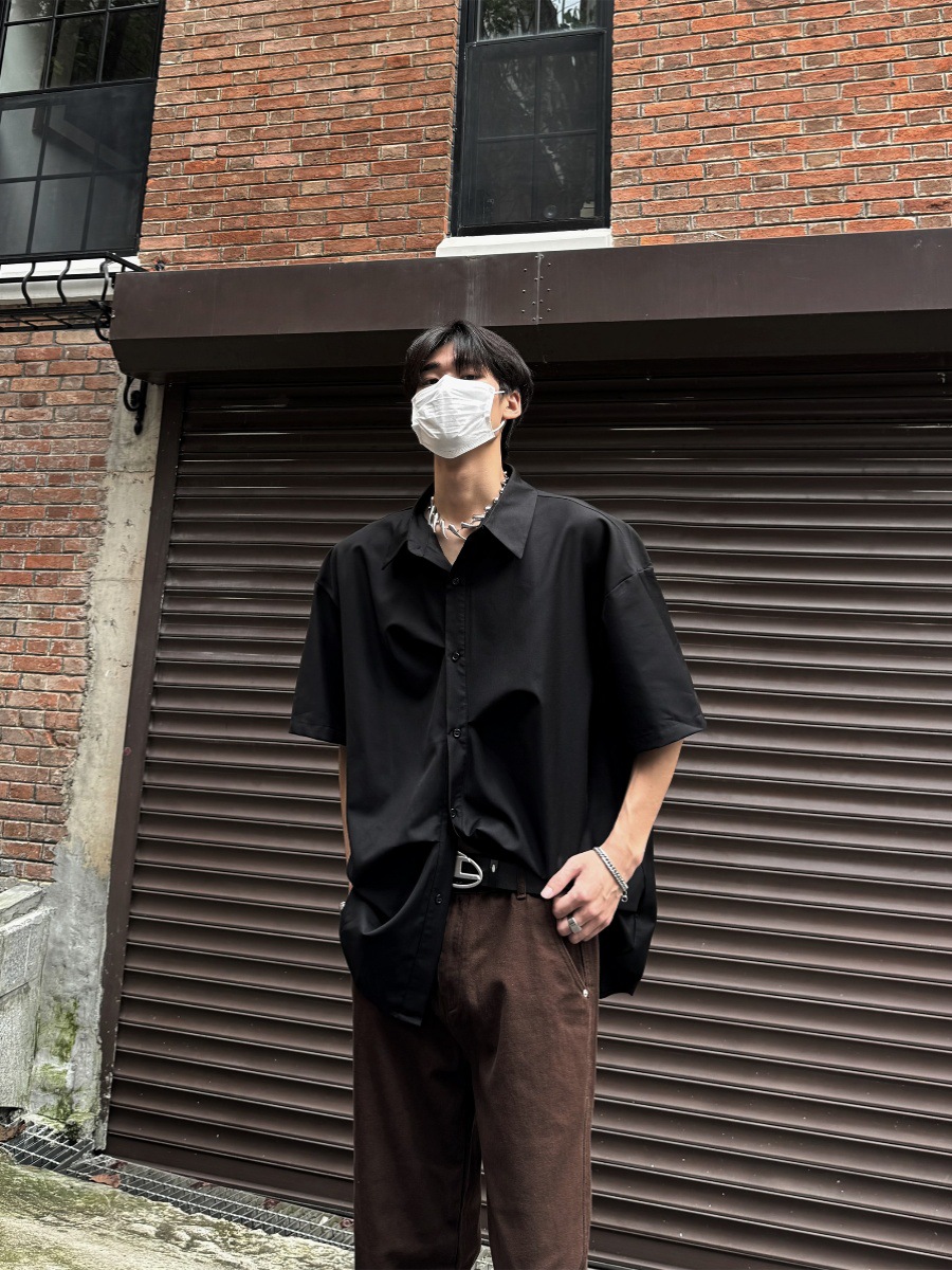 国潮高级感褶皱设计衬衫短袖男夏季新款潮牌慵懒cleanfit痞帅衬衣
