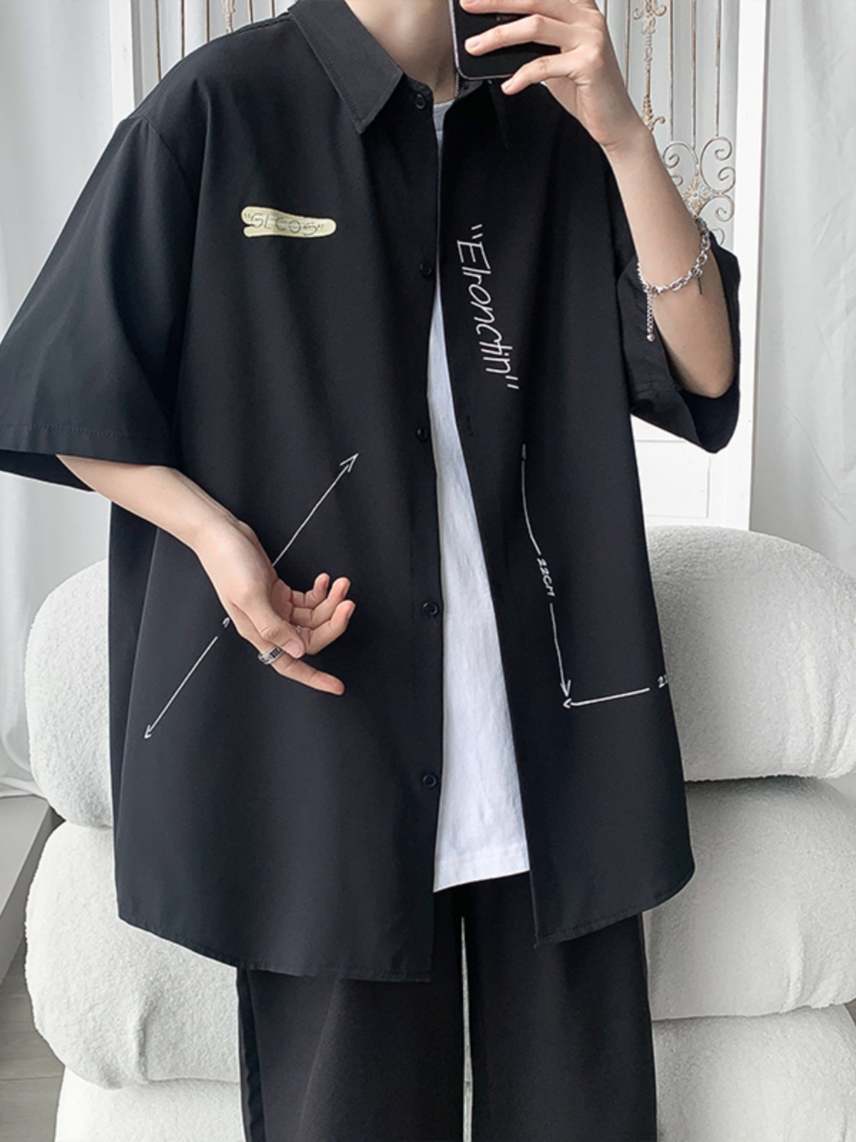 冰丝短袖衬衫男士夏季新款痞帅衣服潮牌潮流宽松休闲半袖衬衣