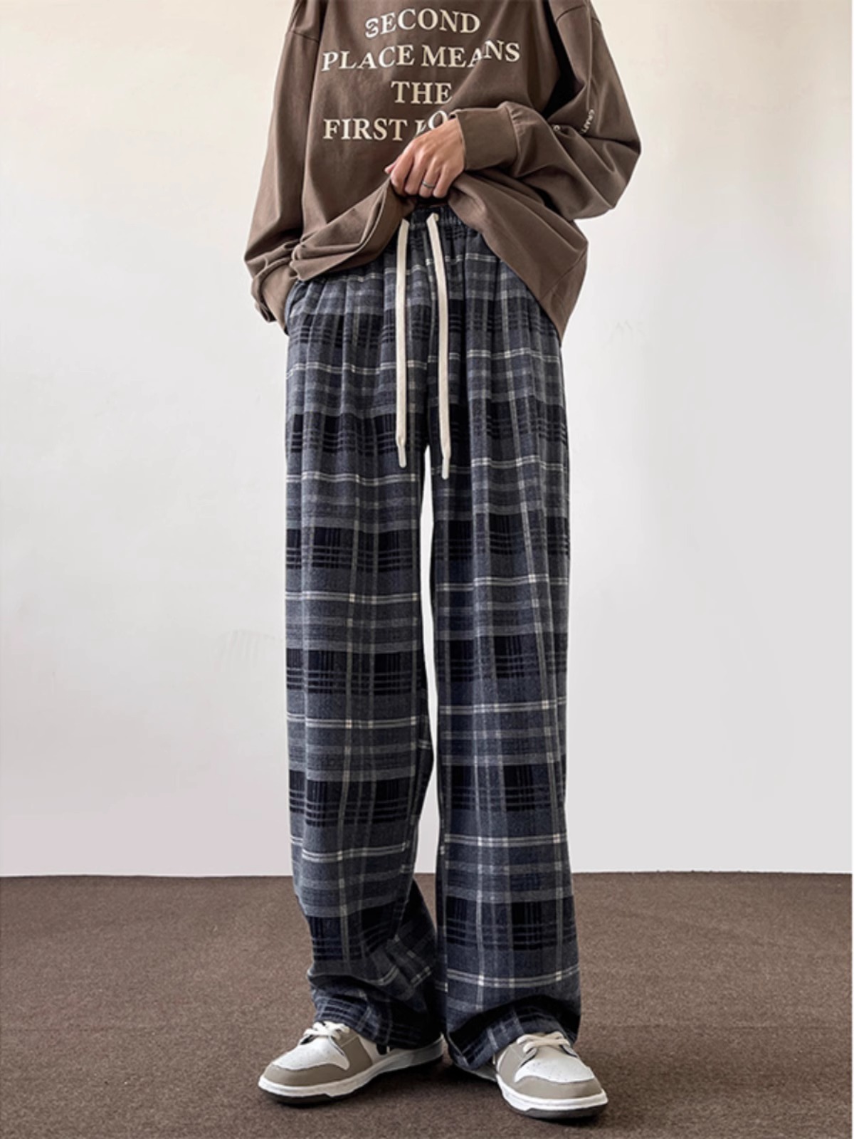 美拉德格子休闲裤男春季新款美式复古高级感宽松直筒阔腿裤子