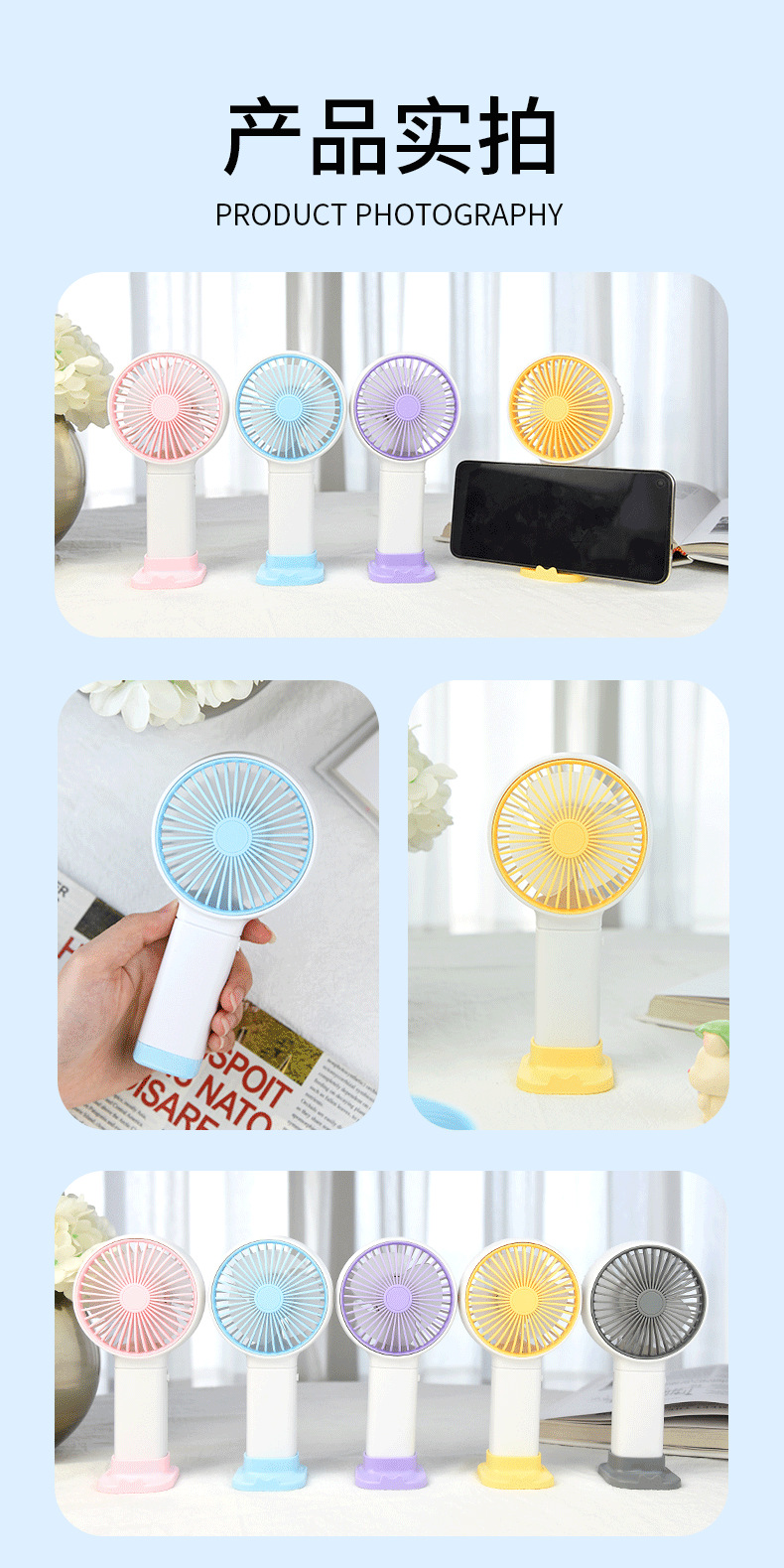 年新品简约带手机支架手持学生小风扇USB充电