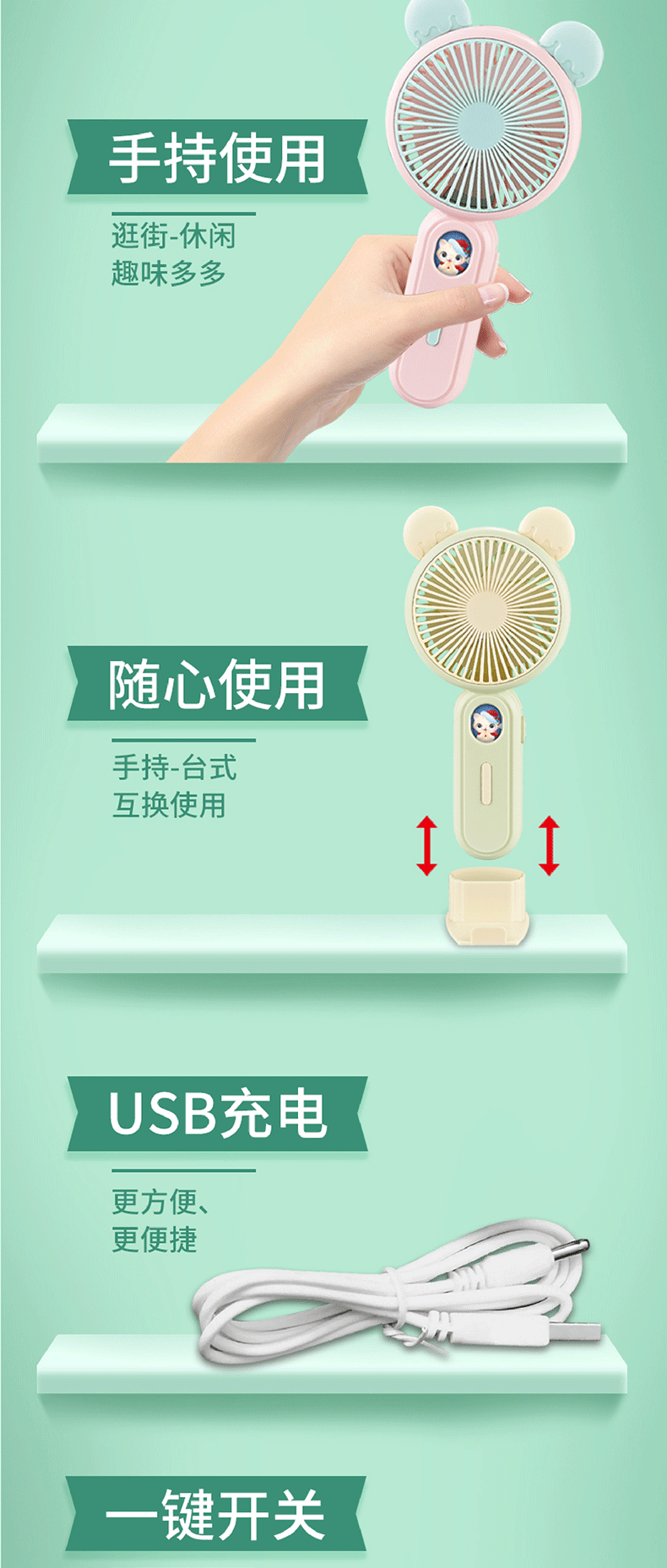 卡通桌面手拿小风扇夏季宿舍usb充电便携随身迷你手持风扇