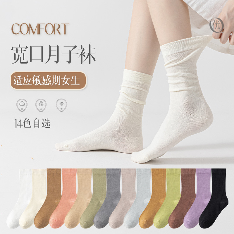 袜子女月子袜女士透气薄款中筒袜女袜堆堆袜松口不勒脚不掉跟棉袜