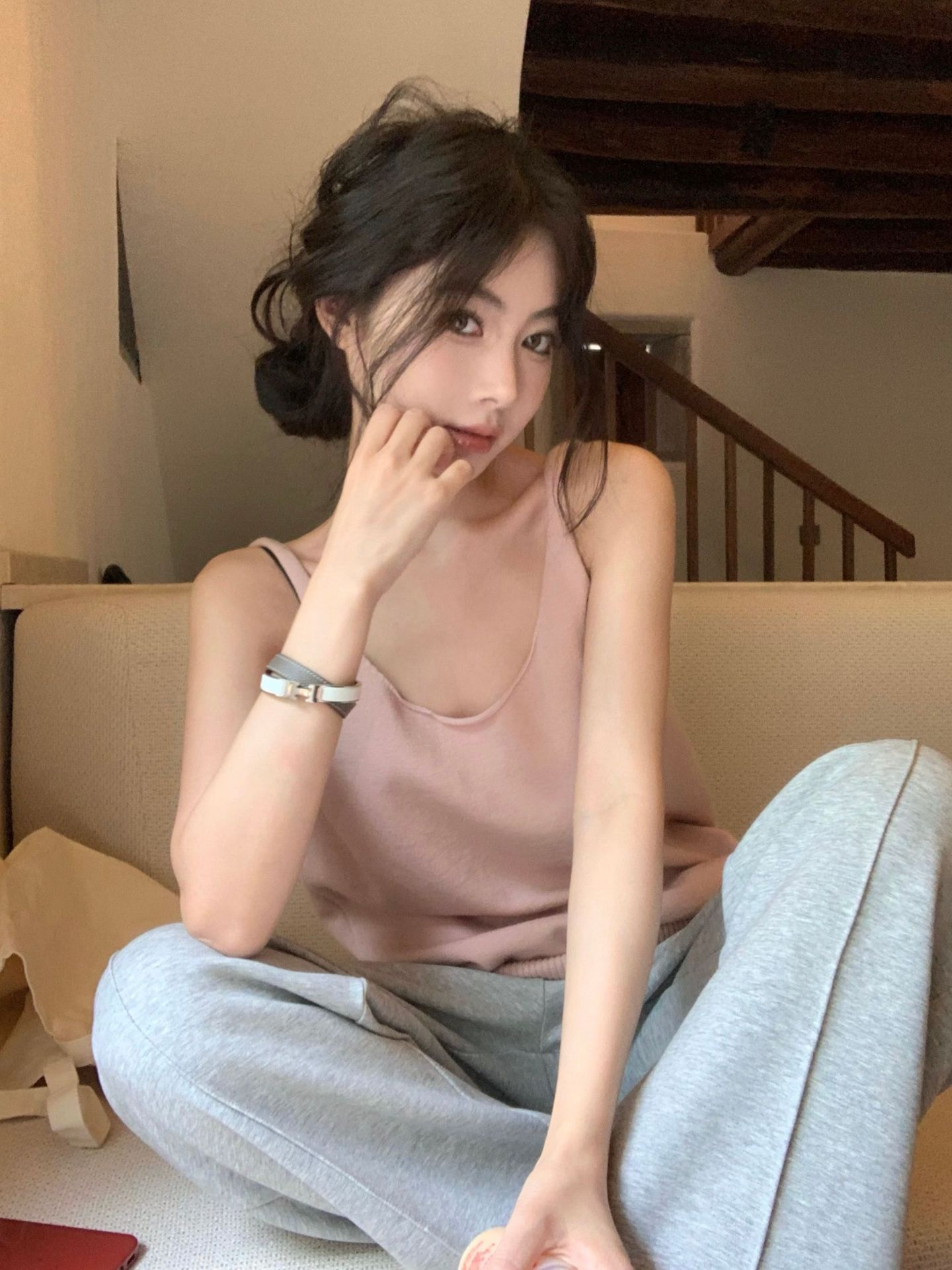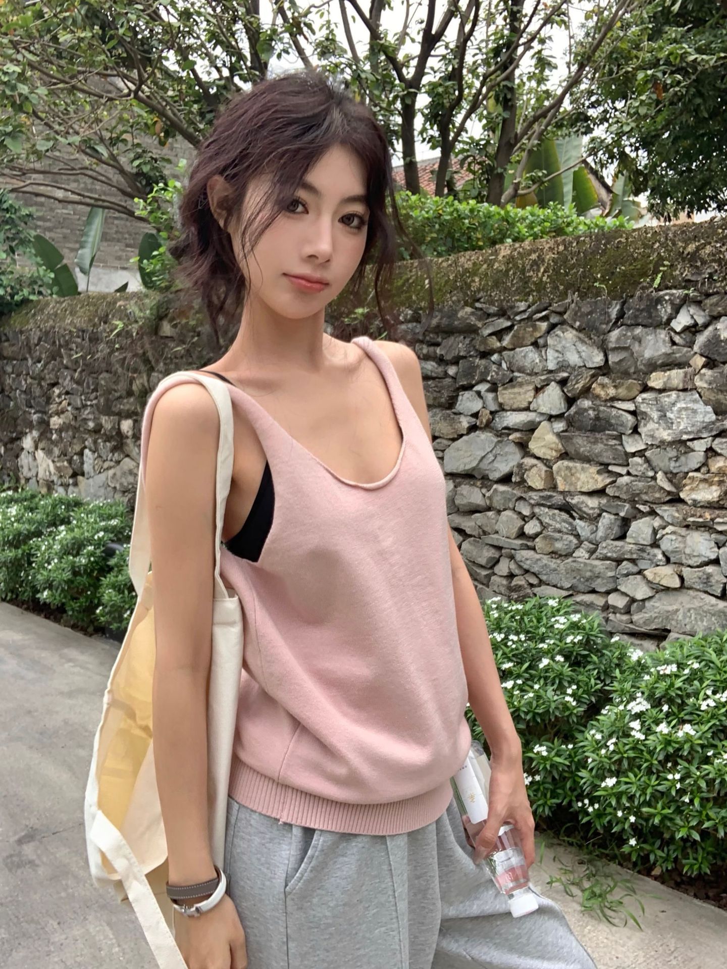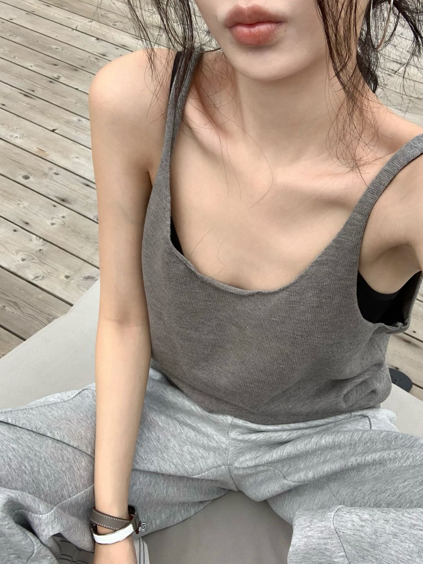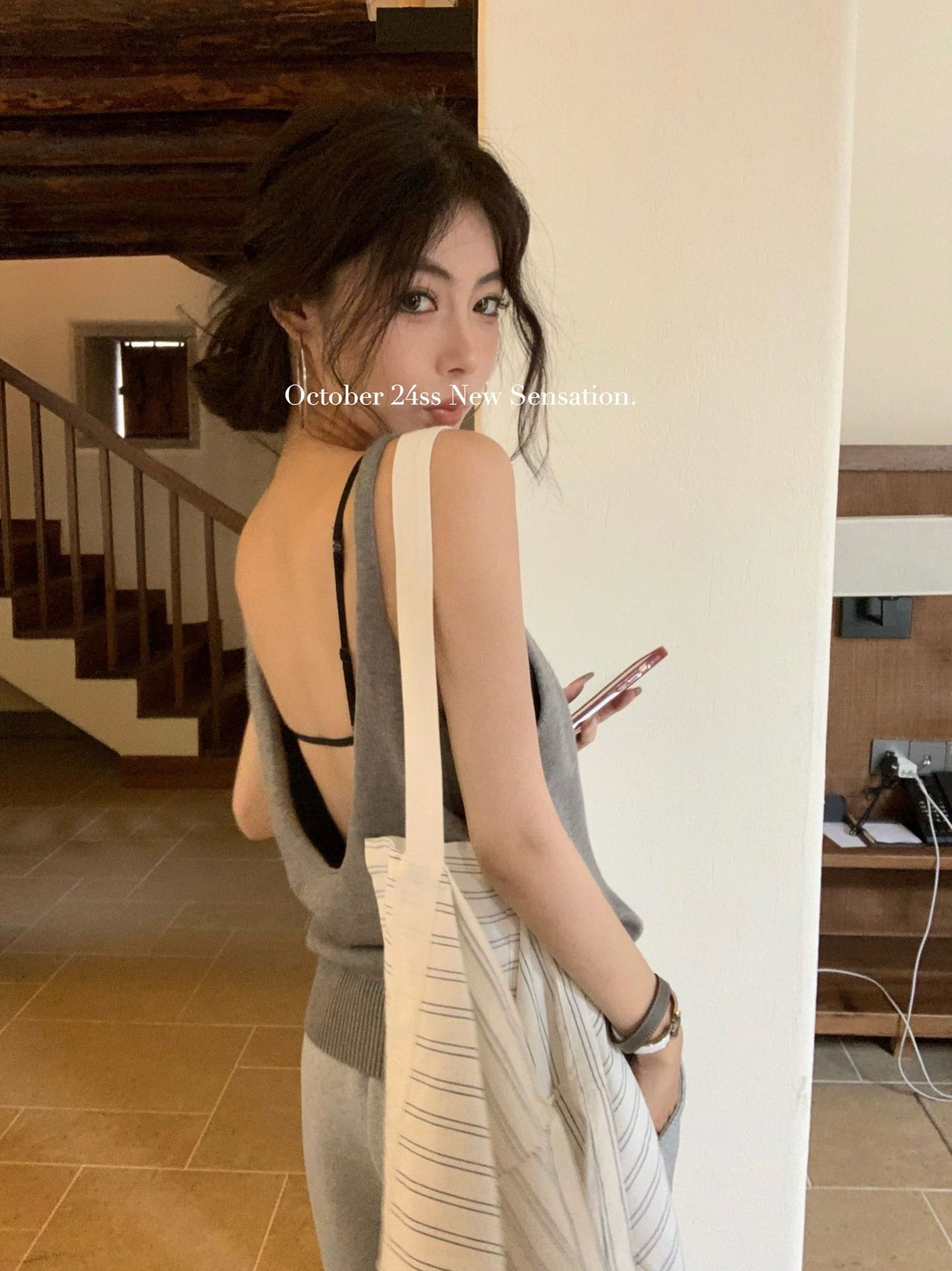 慵懒风露背针织小吊带背心女露锁骨辣妹性感内搭外穿宽松上衣
