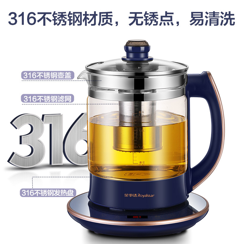 荣事达/Royalstar2L大容量养生壶煮茶器电热水壶保温玻璃花茶壶