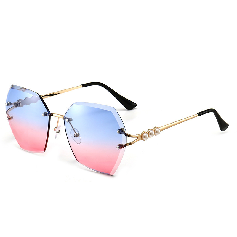 新款时尚无框切边金属框墨镜女士欧美时尚海洋片防紫外线太阳眼镜