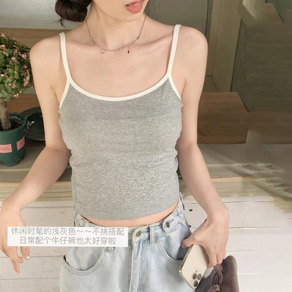 纯欲辣妹风撞色吊带美背内衣内搭胸垫一体裹胸外穿防走光打底上衣