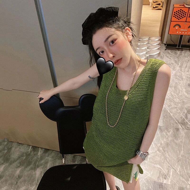 小香风法式高级感休闲显瘦绿色无袖连衣裙小众设计气质名媛新款夏
