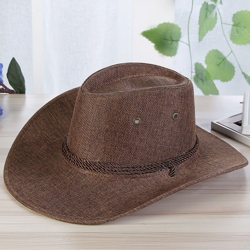 新款夏季男士西部牛仔帽 亚麻定型遮阳帽草帽户外旅游太阳帽