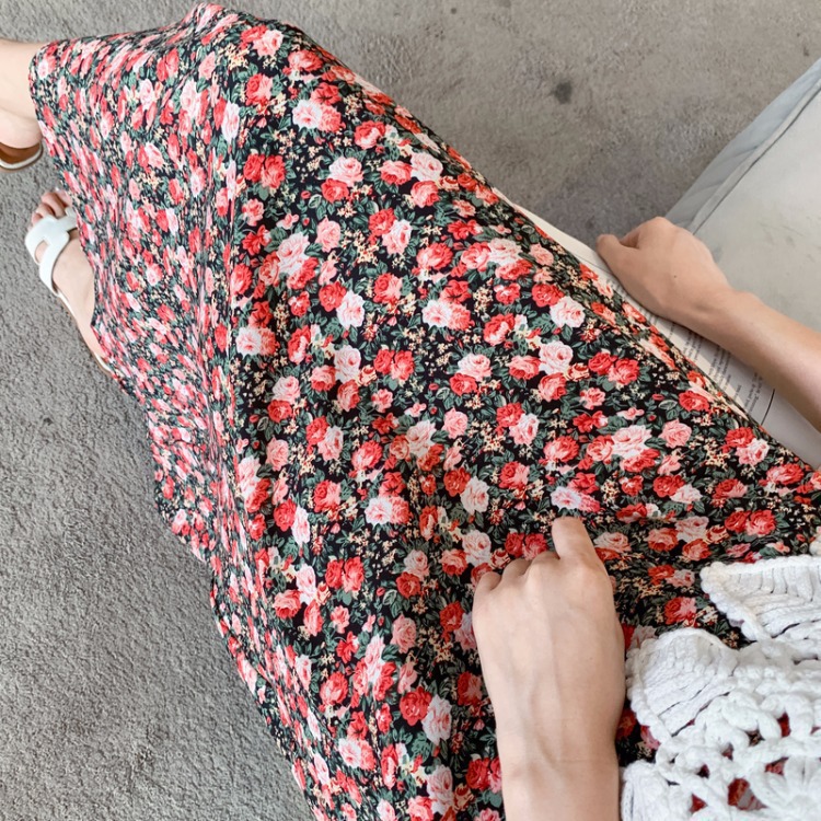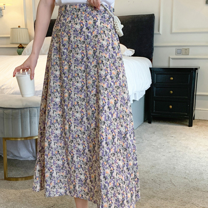 碎花裙春秋夏季女装垂感半身裙新款中长款裙子雪纺高腰