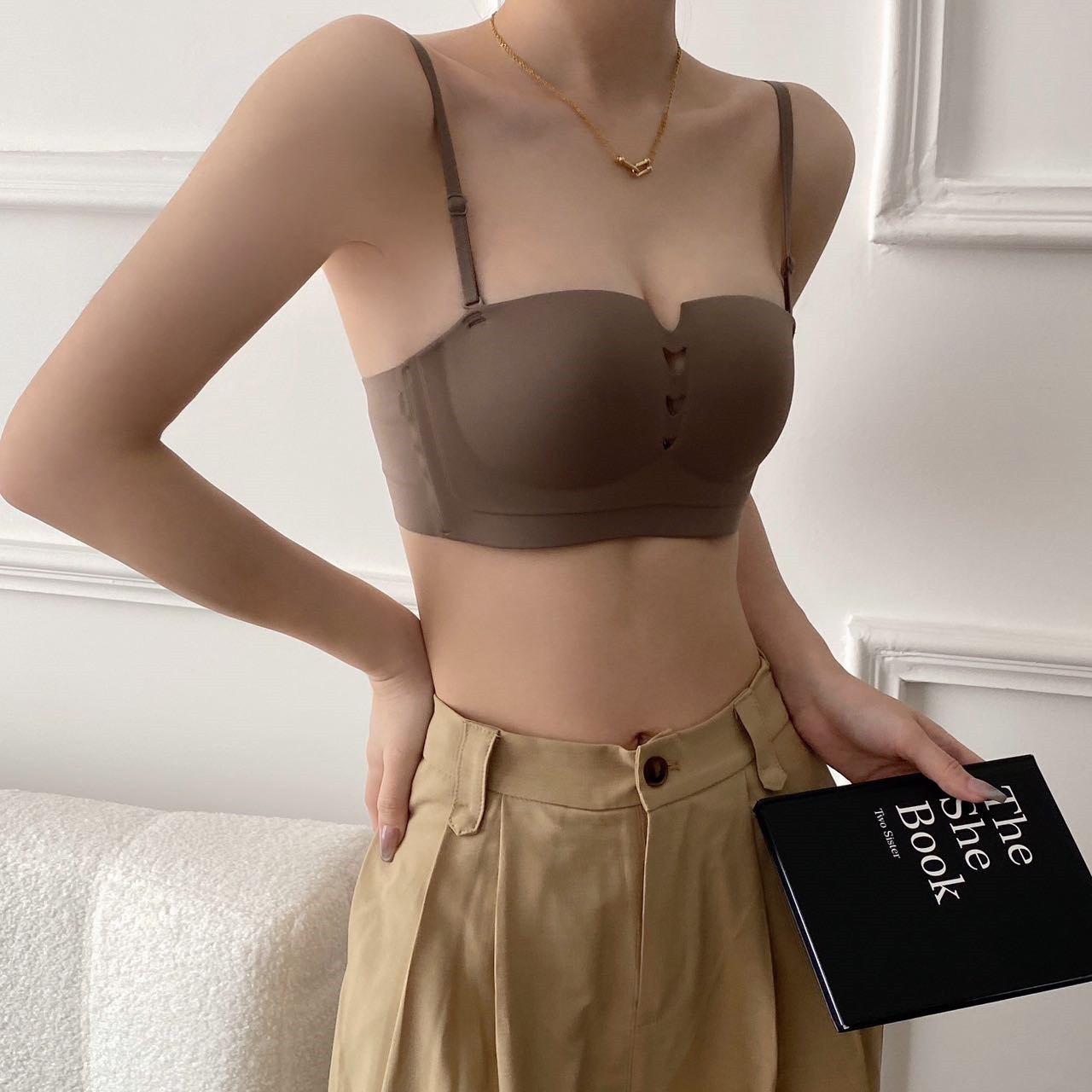 小胸聚拢显大无肩带内衣女薄款上托防滑防下垂收副乳美背隐形文胸
