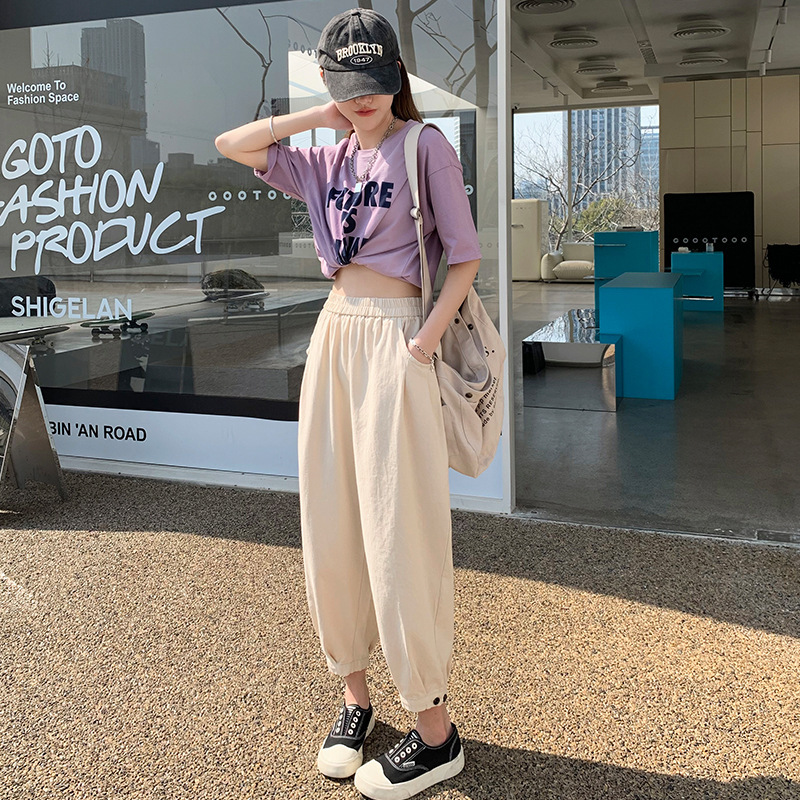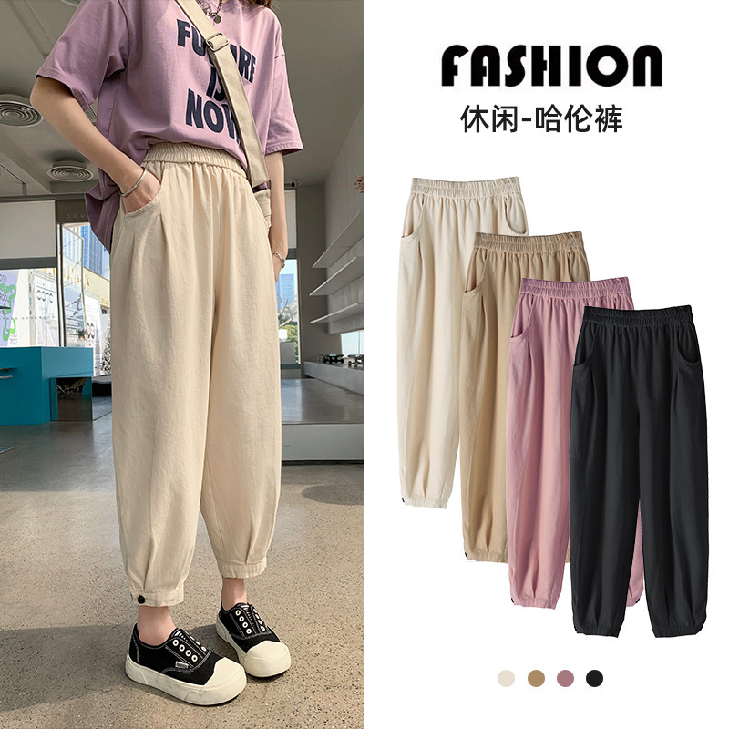 春季哈伦裤女新款小个子九分萝卜裤子休闲梨形身材束脚灯笼裤