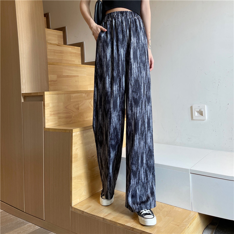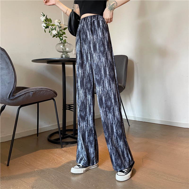 时尚阔腿裤女春秋新款韩版高腰扎染休闲宽松拖地长裤