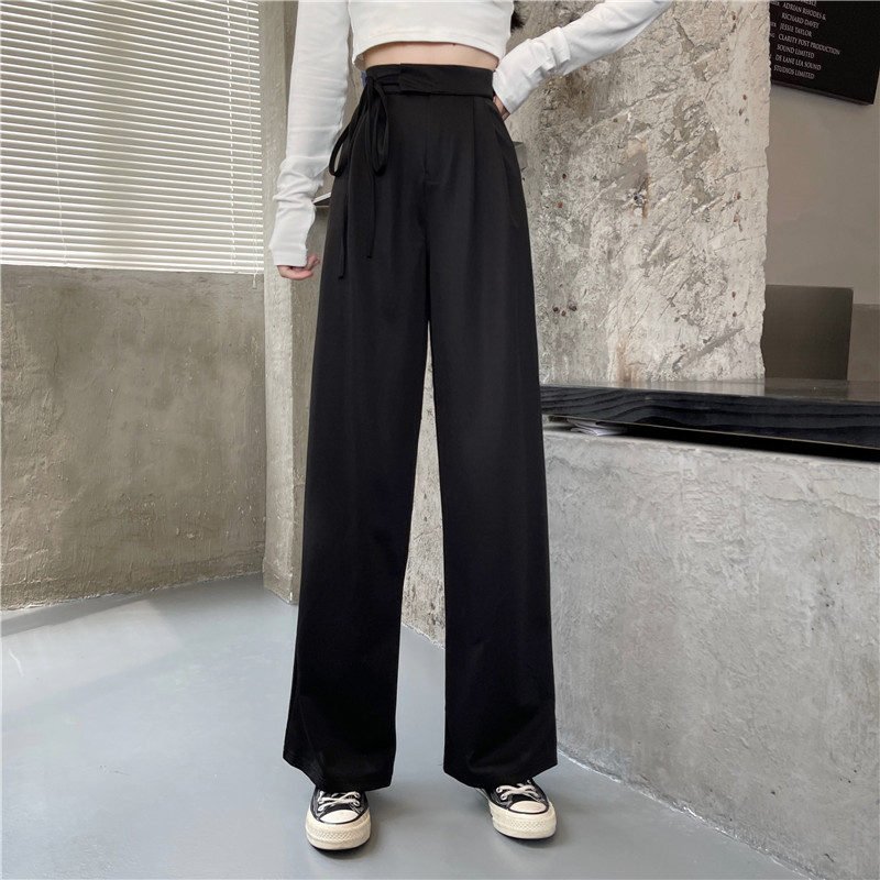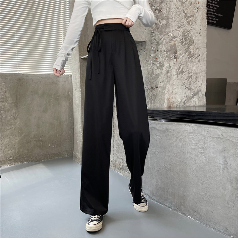 春秋新款宽松阔腿裤韩版高腰垂感西装绑带气质直筒休闲长裤女装潮
