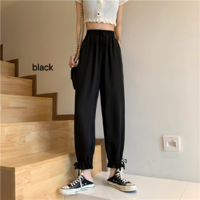 高腰阔腿裤裤子夏季新款宽松休闲裤灯笼裤哈伦裤女薄款九分裤