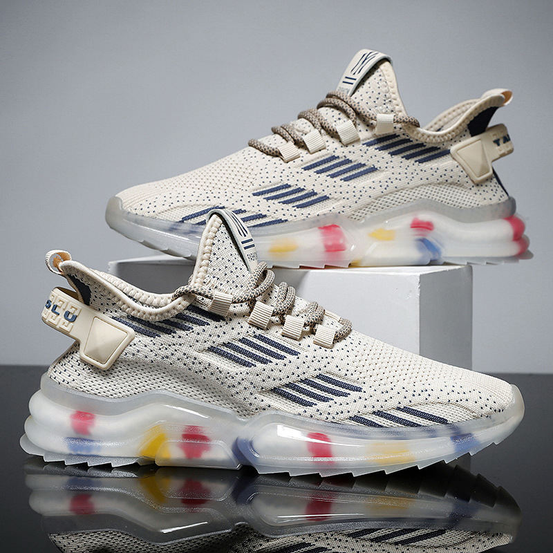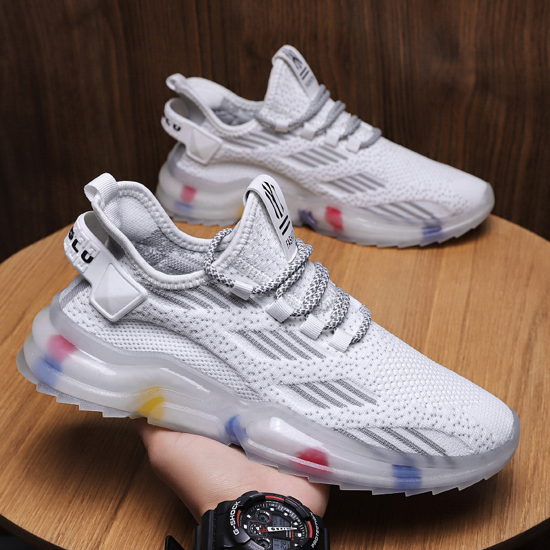 夏季爆米花飞织运动鞋男透气网面潮鞋青少年学生休闲鞋防滑跑步鞋
