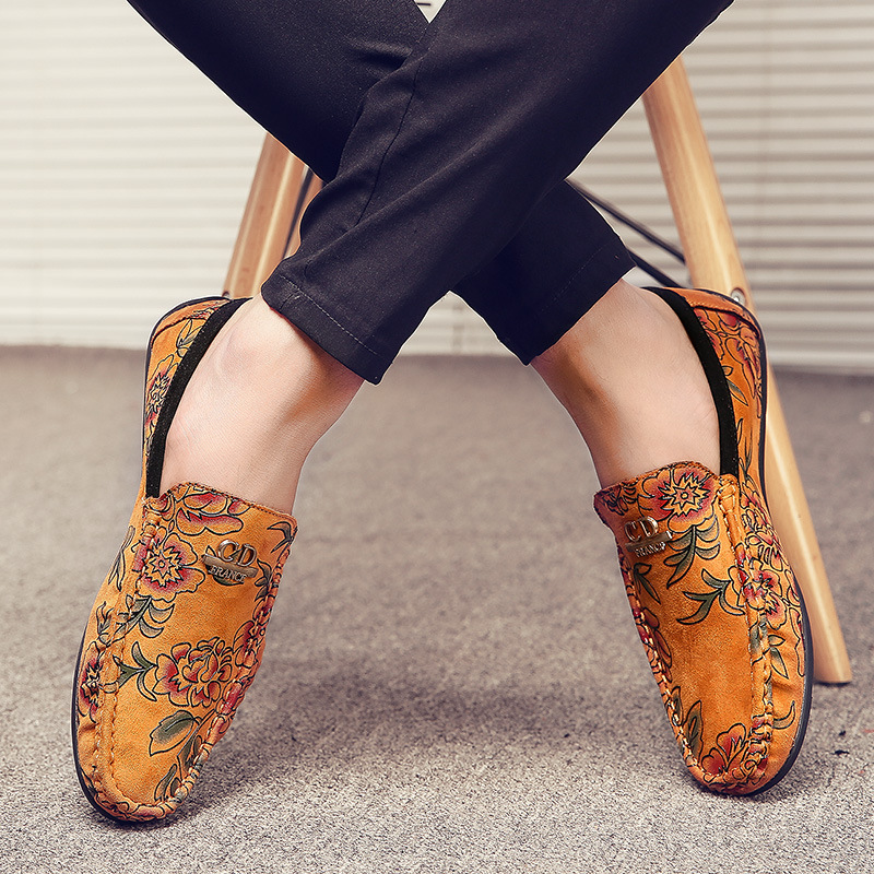 潮流玫瑰花豆豆鞋男韩版软底舒适懒人一脚蹬英伦休闲皮鞋男